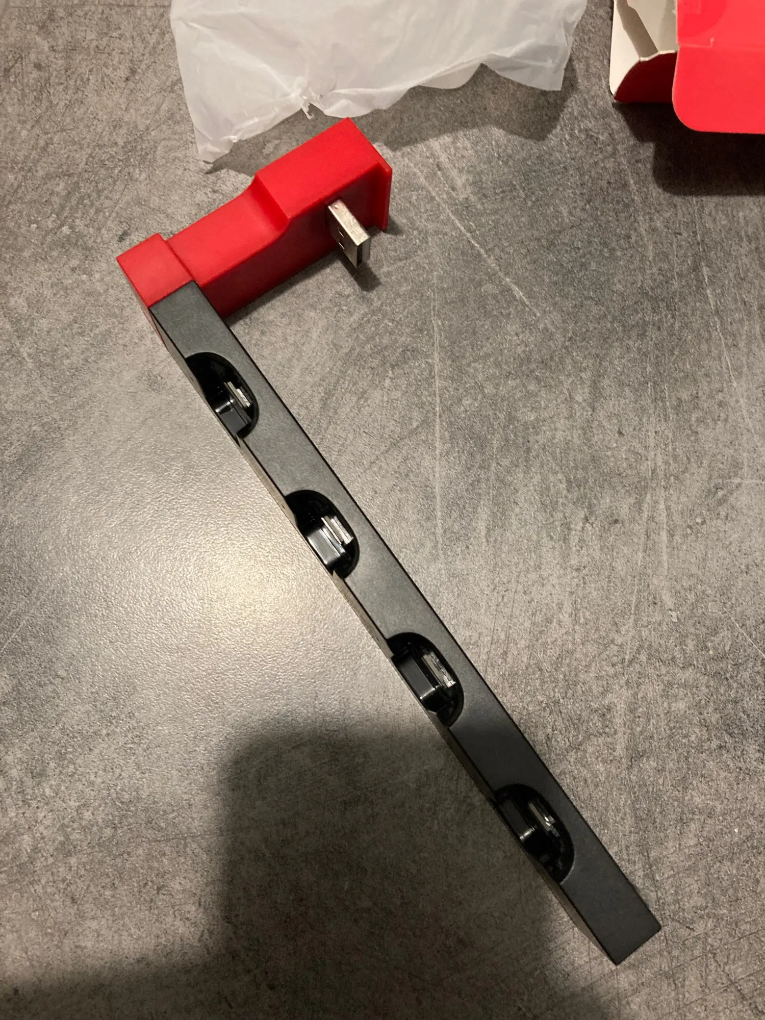 Buen invento, muy pequeño y funciona muy bien, así puedes cargar hasta 6 mandos, 2 en la consola y 4 en el soporte.