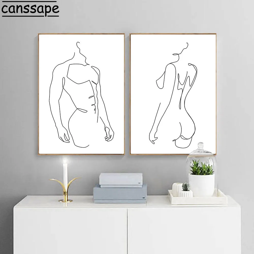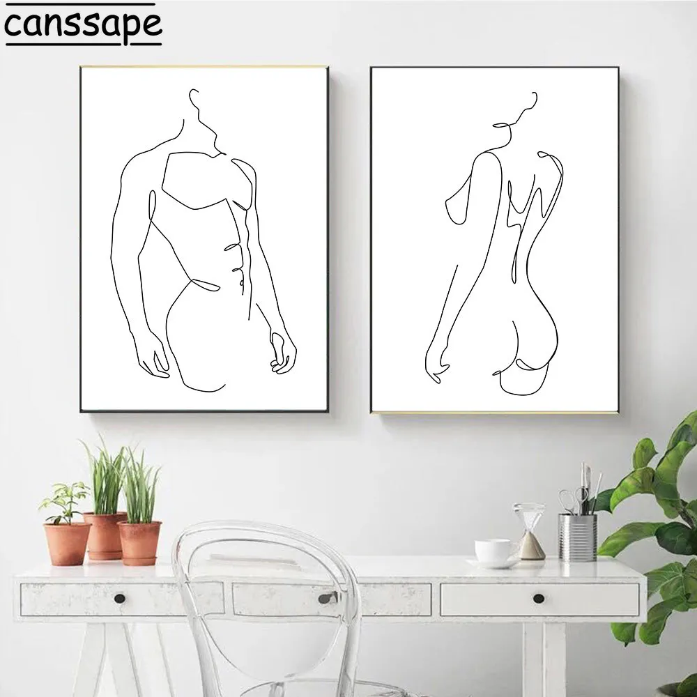 Постер на холсте с изображением обнаженной женщины, абстрактная линия, художественный принт, черно-белый постер, Минималистичная картина, Украшение стен для спальни