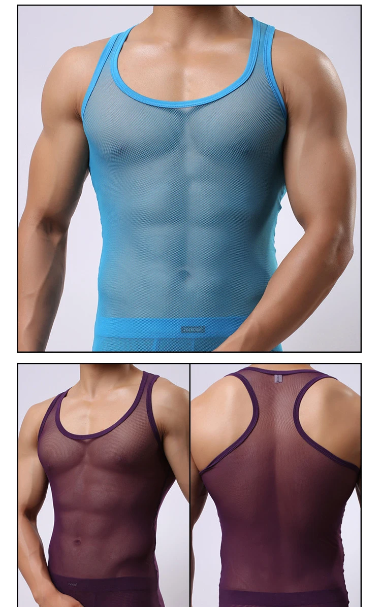 Сексуальные мужские майки с прозрачной сетчатой тканью, прозрачная сетчатая майка без рукавов, дышащая Прозрачная облегающая жилетка