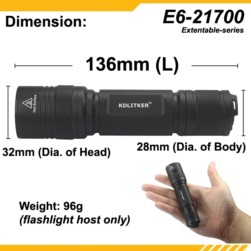 KDLITKER E6-21700 P60, хост фонарика, черный (1 шт.)