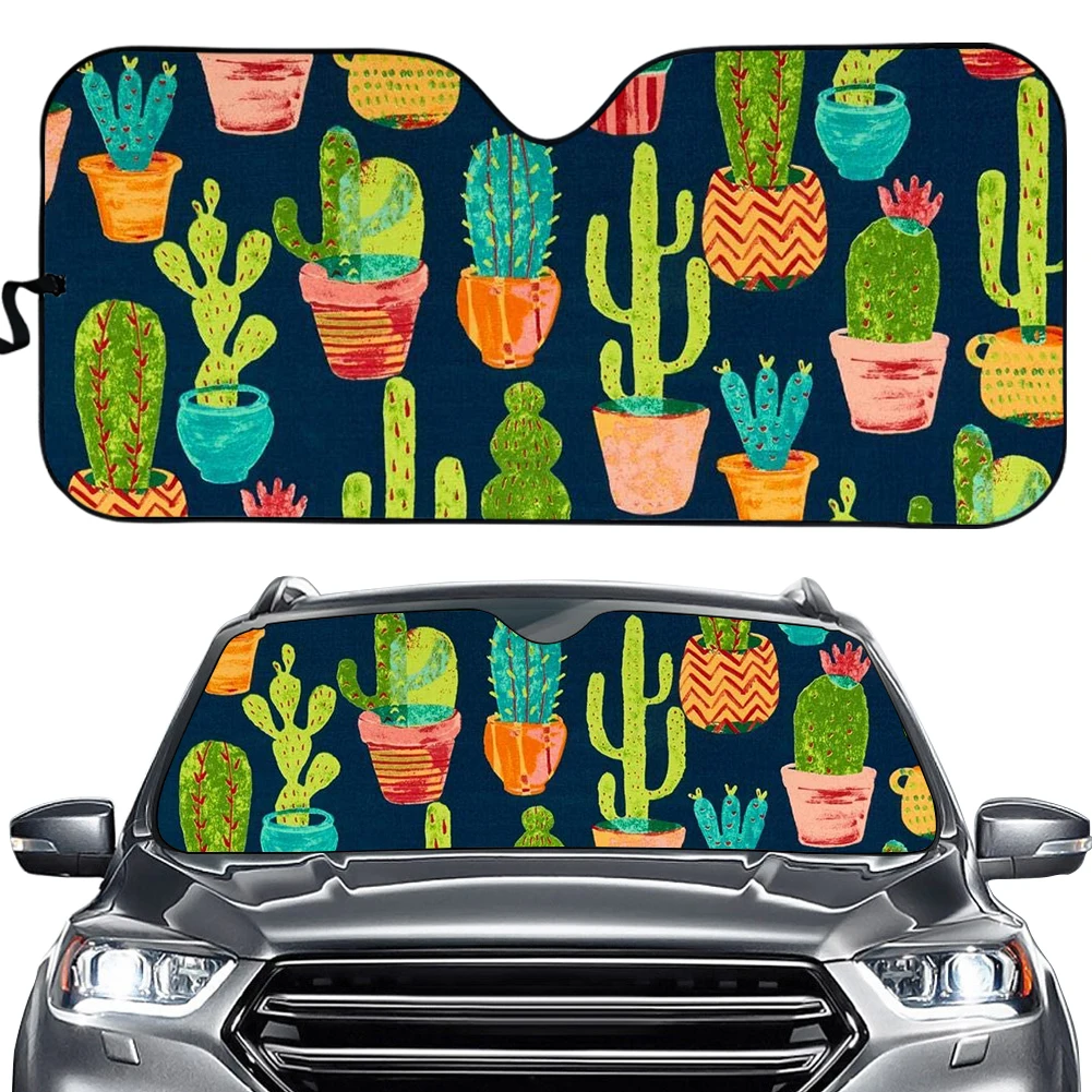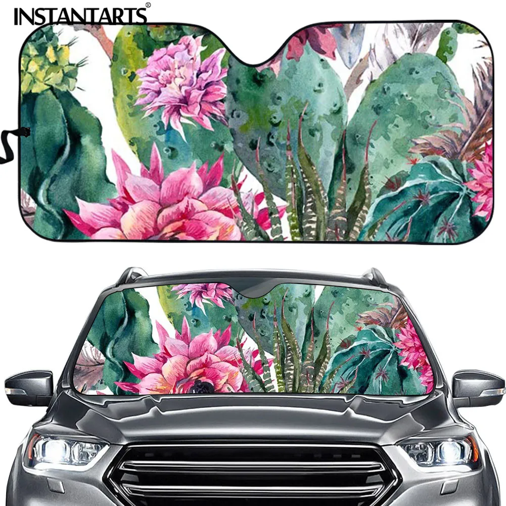 Автомобильный отражатель для лобового стекла INSTANTARTS, универсальный защитный козырек от солнца, с мультяшным цветочным рисунком кактуса для внедорожника