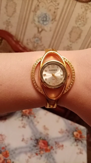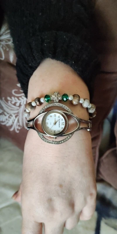 Отличные часы, очень красивые, стразики все на месте. Мне подошли по размеру, но на полную руку не подойдут, будут малы. Браслет удобный, не нужно застёгивать и растёгивать, просто надел браслет, и супер!!! Не знаю, сколько прослужат, но за такие деньги достойный товар!