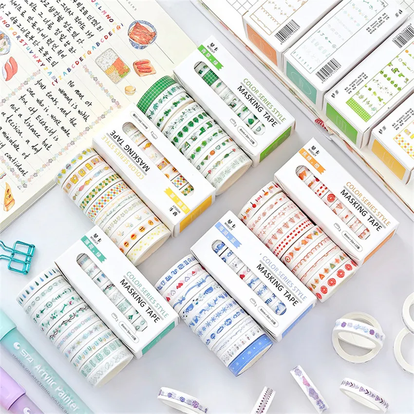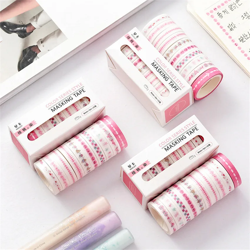 Абг = 8 мм x 3 м x 10 шт. Мультяшные радужные наклейки разделительная рамка Маскировочная клейкая бумага васи лента Сделай Сам Скрапбукинг ручная учетная запись