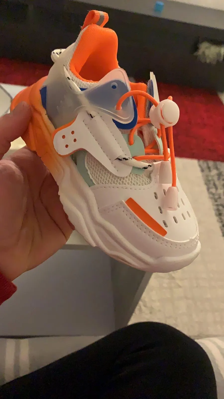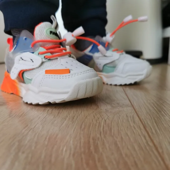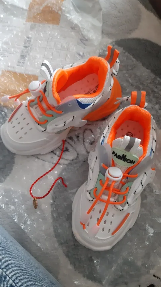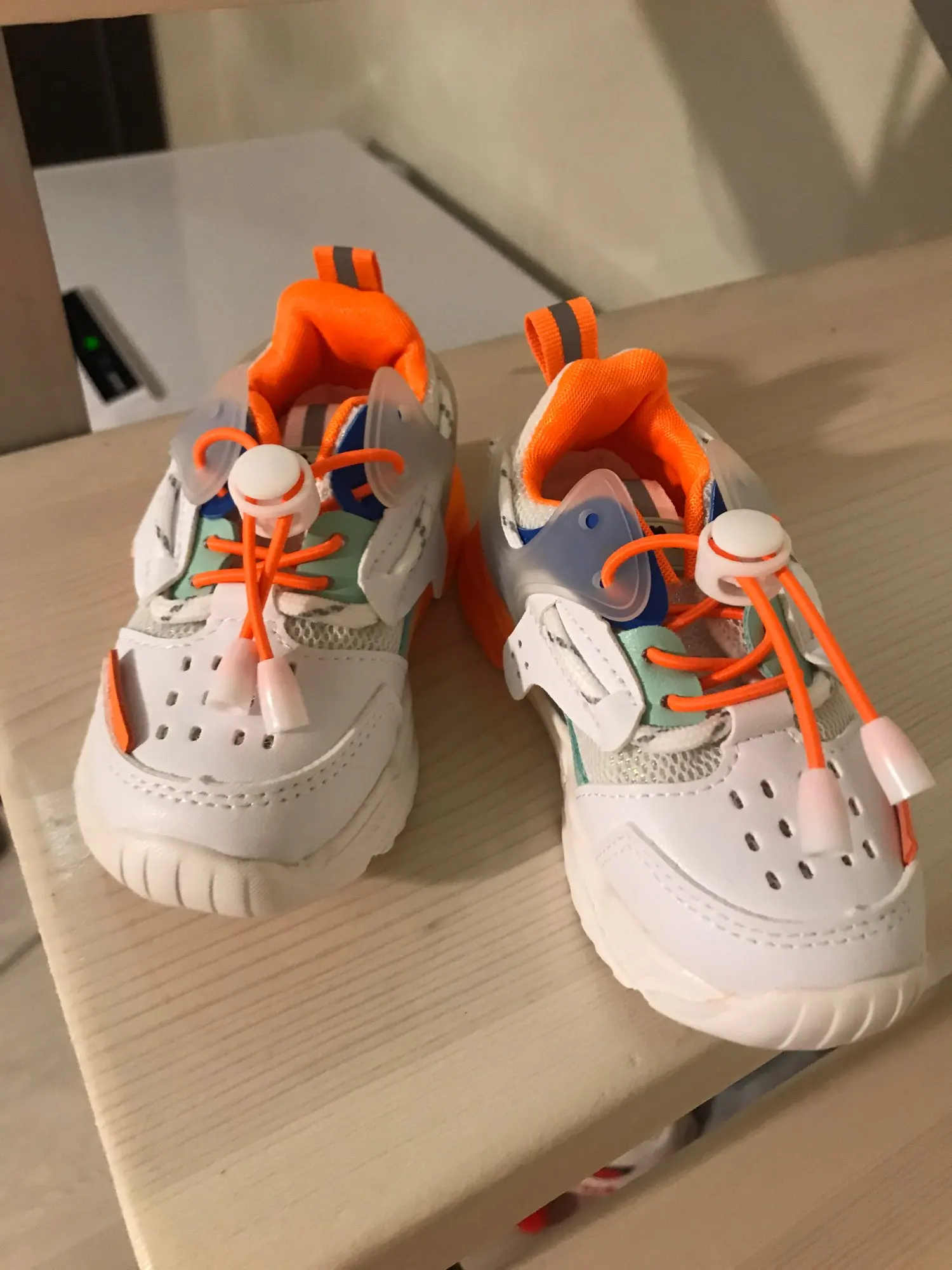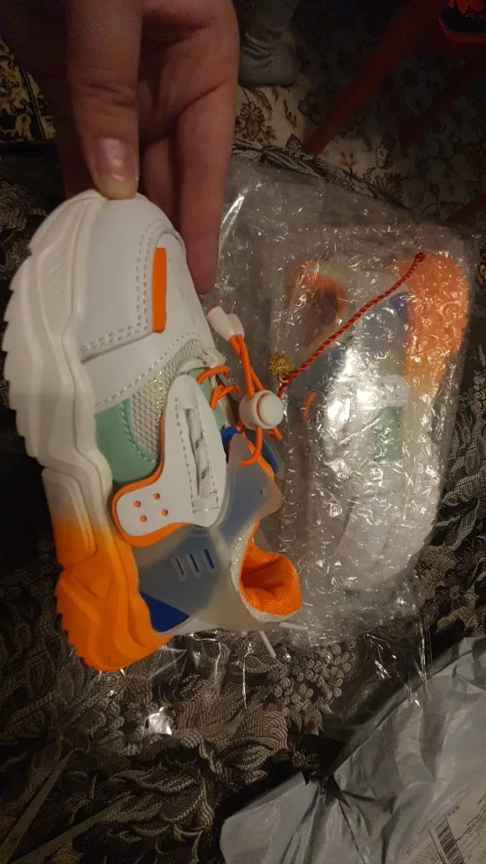 Кроссовочки дошли за 3 недели.В оранжевой товальности выглядят осень ярко,по весеннему,качественно прошиты,благодоря двум шнурочкам которые затягиваются с зади и впереди,ножка для начинающих ходить детишек может быть надежнее закреплена.При распоковке присутствовал легкий запах,который черех 20 мин .после вскрытия упаковки,полностью исчез.Спасибо продавцу за качественный красивый товар и скорость его выполнения.