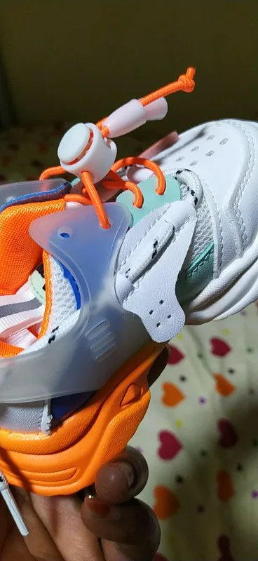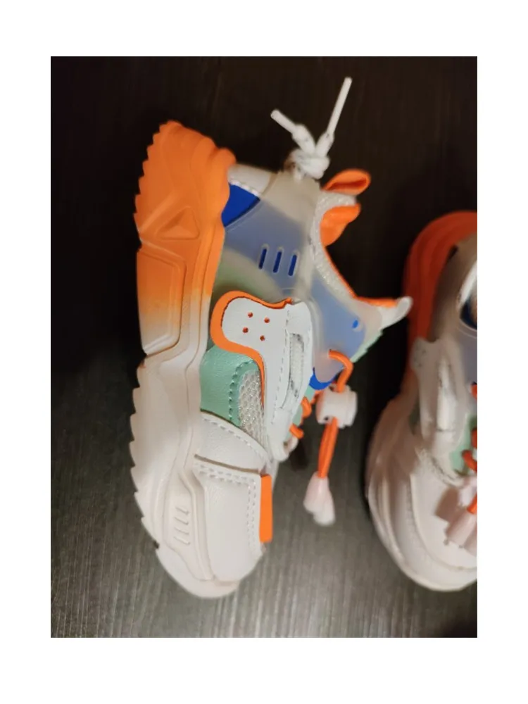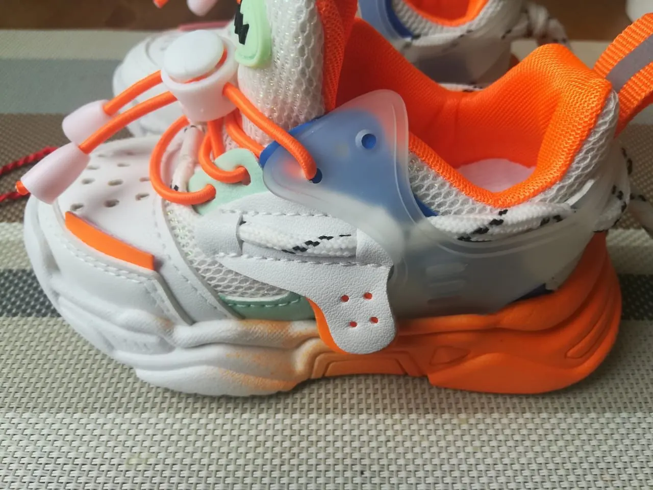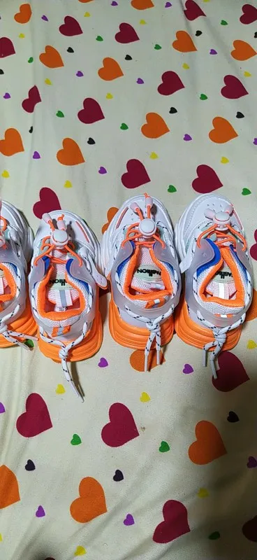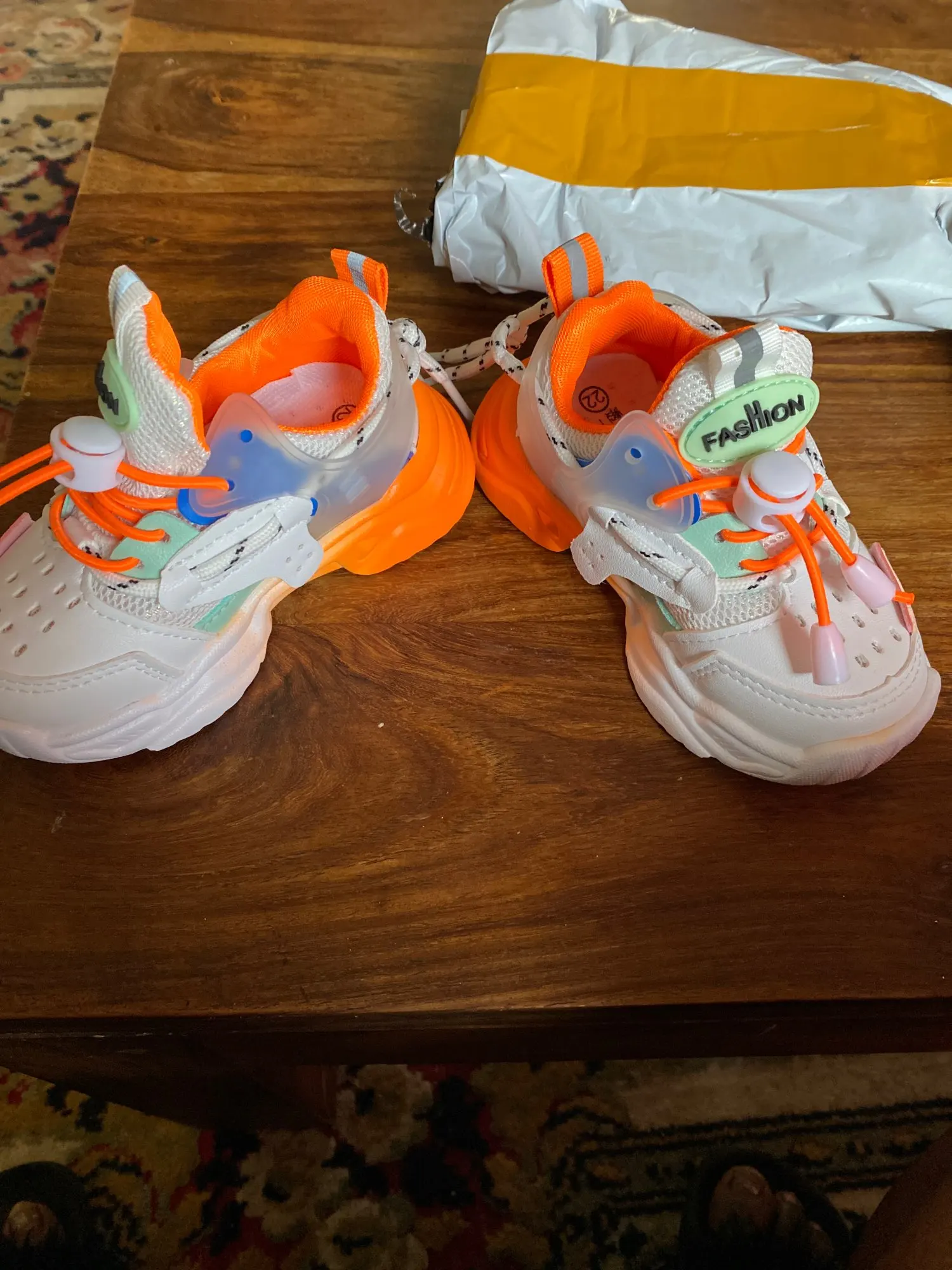 Кроссовочки дошли за 3 недели.В оранжевой товальности выглядят осень ярко,по весеннему,качественно прошиты,благодоря двум шнурочкам которые затягиваются с зади и впереди,ножка для начинающих ходить детишек может быть надежнее закреплена.При распоковке присутствовал легкий запах,который черех 20 мин .после вскрытия упаковки,полностью исчез.Спасибо продавцу за качественный красивый товар и скорость его выполнения.