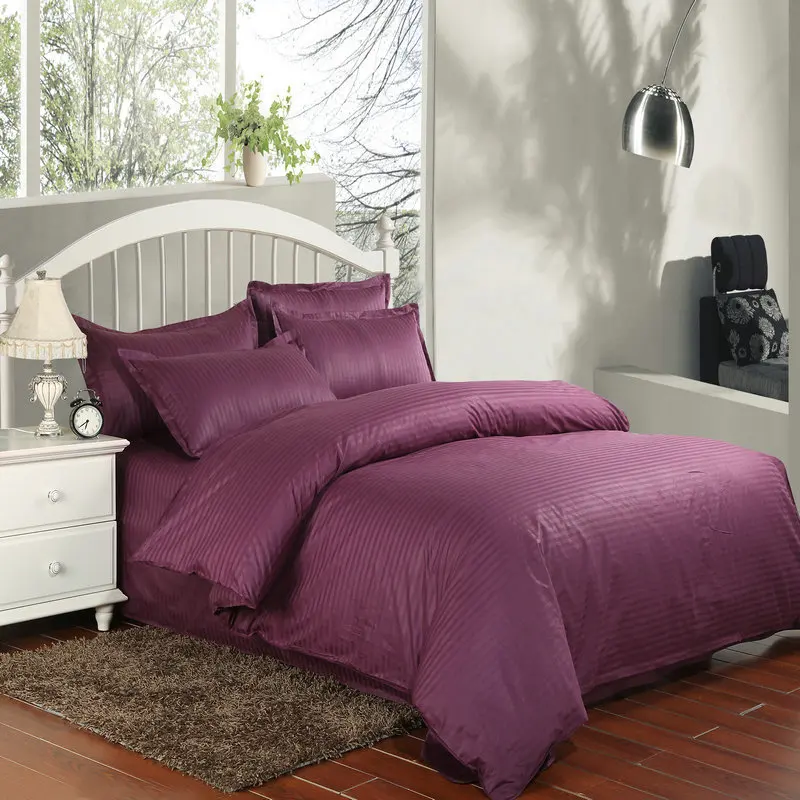 Набор постельного белья для отеля, сатин, 100% хлопок, в полоску, для двуспальнойодноспальной кровати размера Full QueenKing