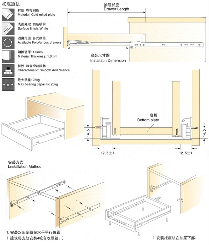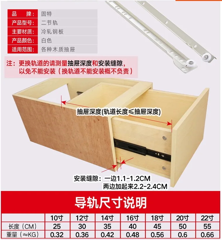 Слайды для выдвижных ящиков с двумя направляющими для шкафов, утолщ...