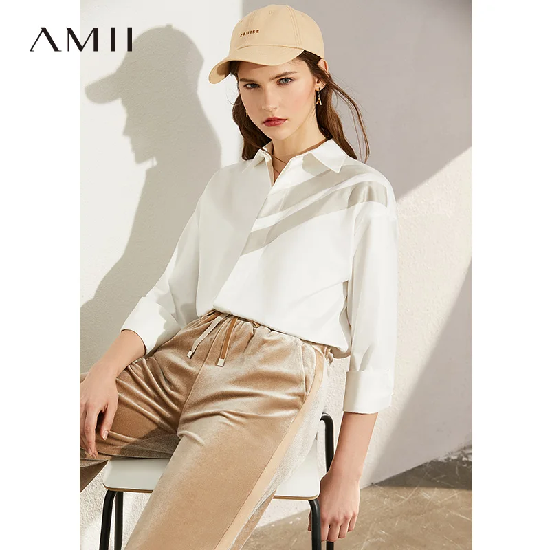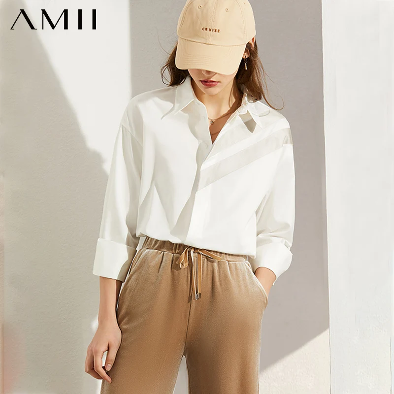 Весенняя Новинка, женская рубашка в стиле минимализма AMII, повседневная официальная Женская однобортная блузка с отворотом, женские топы 12040344