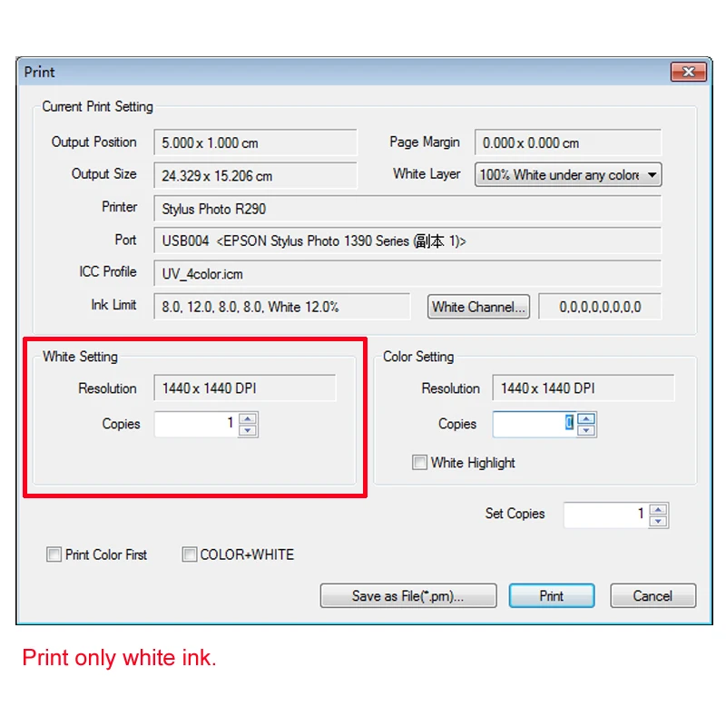 Подходит для: A3 A4, EPSON L805 L800 L1800 R2000 R2000 R2400 DTF оригинального принтера. (Предоставляется RIP9.03: печать белыми чернилами отдельно, печать цветов и белых чернил одновременно с зеркальным изображением)