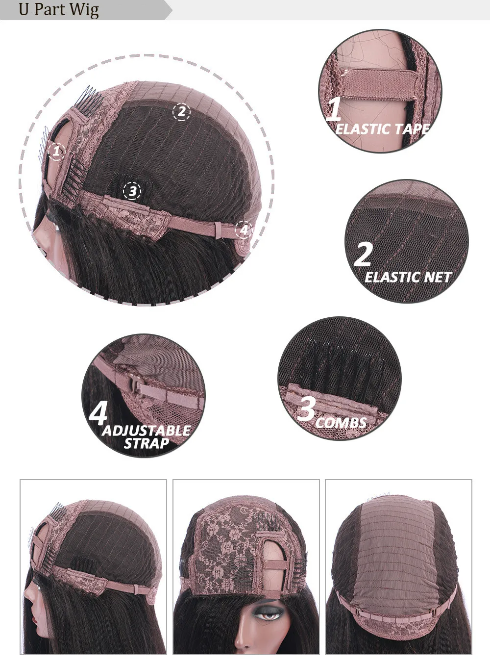 U-образные парики, длинные волнистые волосы с эффектом омбре, парики из человеческих волос 250% для женщин, Remy, бразильский 150% натуральный цвет с регулируемым ремешком