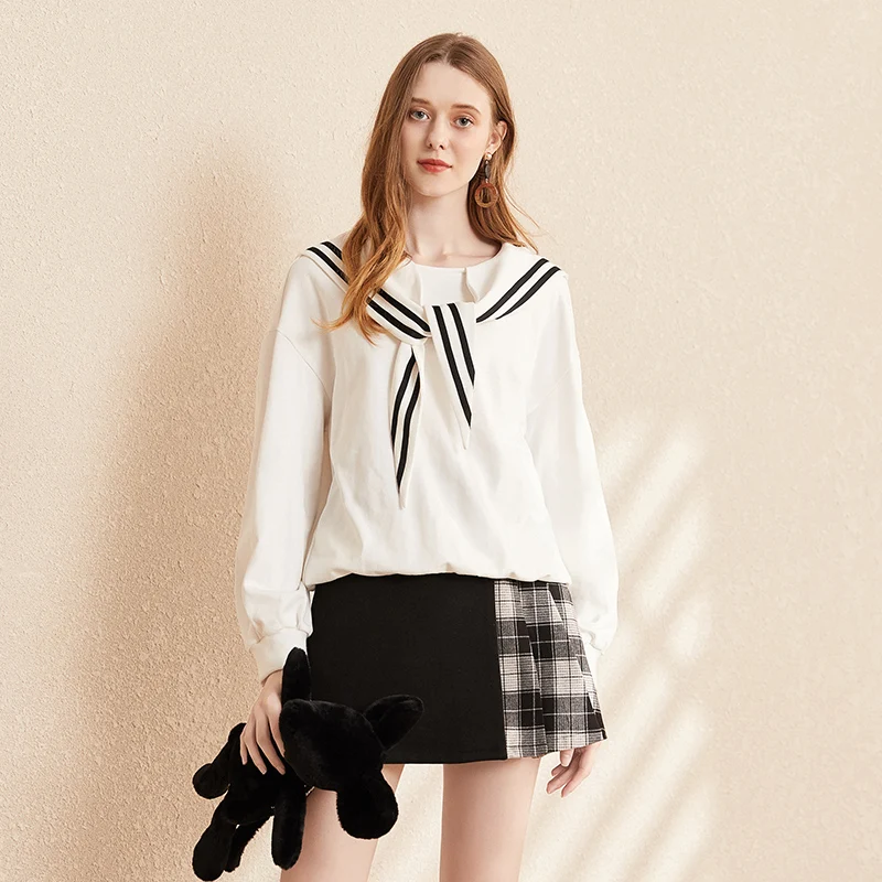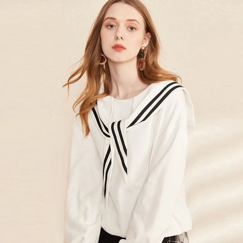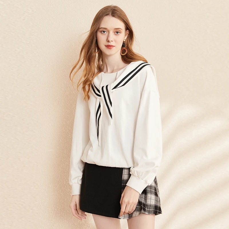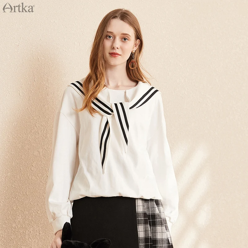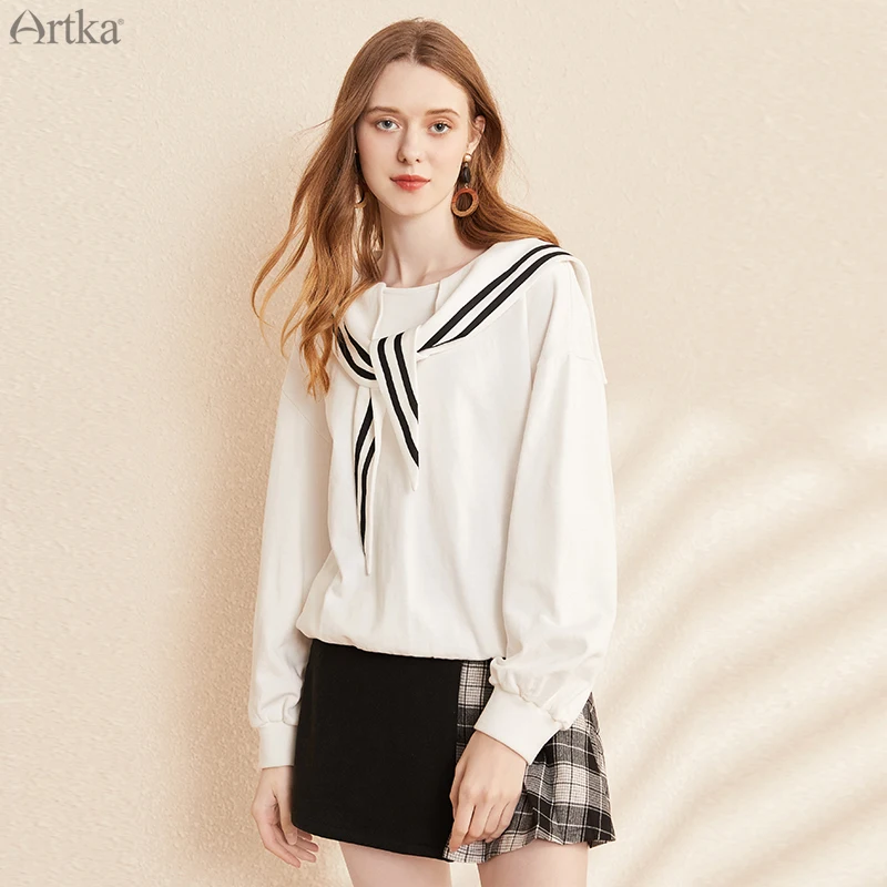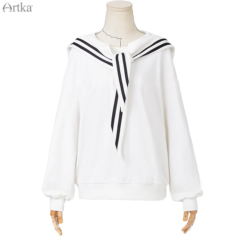 Женский свитшот с матросским воротником ARTKA, белый Повседневный Свободный пуловер в студенческом стиле, VA25002Q, на осень 2020