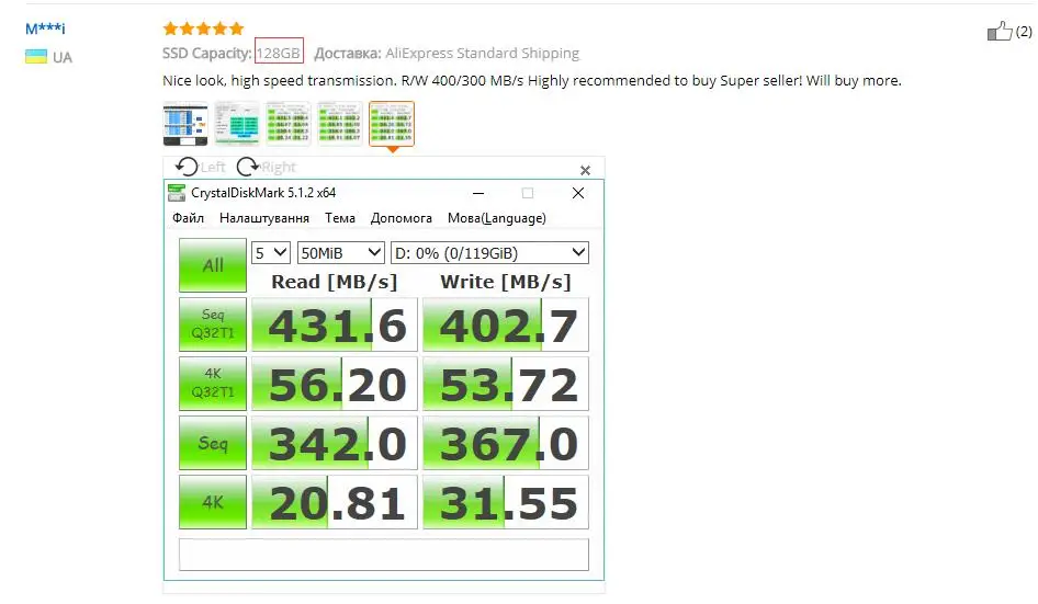 В описании указано, что диск должен быть доставлен ~ 400 МБ/с./с. Я не мог получить его быстрее, чем 44 МБ/с./с на большом (1 Мб +, 8-16 глубина очереди) последовательный IO с пустым диском. Учитывая то, что я занимаюсь дисковыми системами в качестве своей полной работы, я знаю, что делать и могу оставаться за своими словами. Этот диск очень медленный, это точно! Пожалуйста, обратите внимание, что продавец сделал замечательную работу, и это не их вина, что производитель обладал; У них нет инструментов и опыта, чтобы проверить претензии, сделанные теми, кто сделал диск.