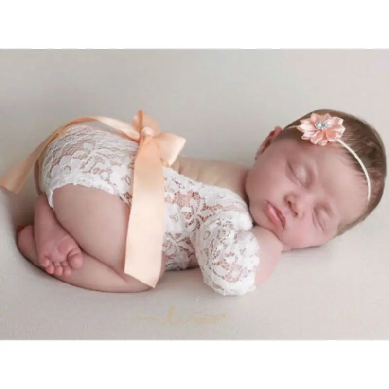 Реквизит для новорожденных; Хлопковый комбинезон для новорожденных; Комбинезон; Реквизит для фотосессии для малышей; Красивый кружевной комбинезон с длинными рукавами; Великолепный дизайн с открытой спиной
