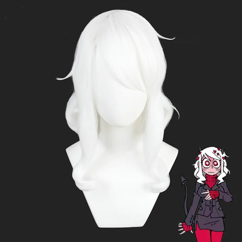 Helltaker белый вьющиеся волосы Косплэй Хэллоуин вечерние синтетический термостойкий парик + бесплатная парик Кепки