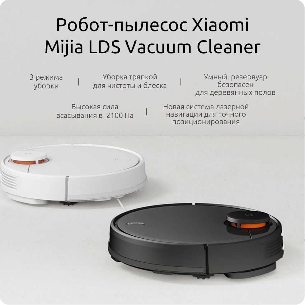 Робот-пылесос Xiaomi Mijia LDS Vacuum Cleaner (Белый,Чёрный) (STYTJ02YM), Пылесос для дома, Робот Пылесос Моющий, Влажная уборка