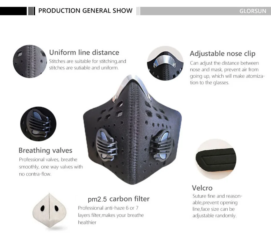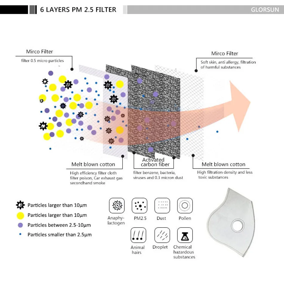 GLORSUN маска для лица, модная, оптовая продажа, анти-смога, загряз...