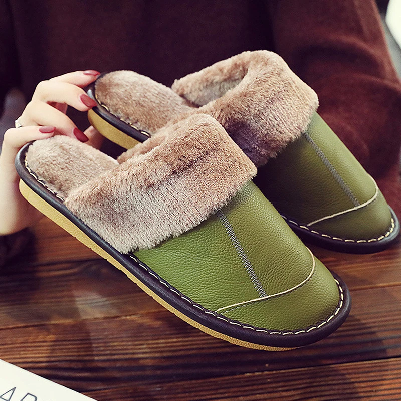 Тапочки женские из натуральной кожи, с мягким вельветом, водонепроницаемая обувь, плюшевые тапочки, домашние