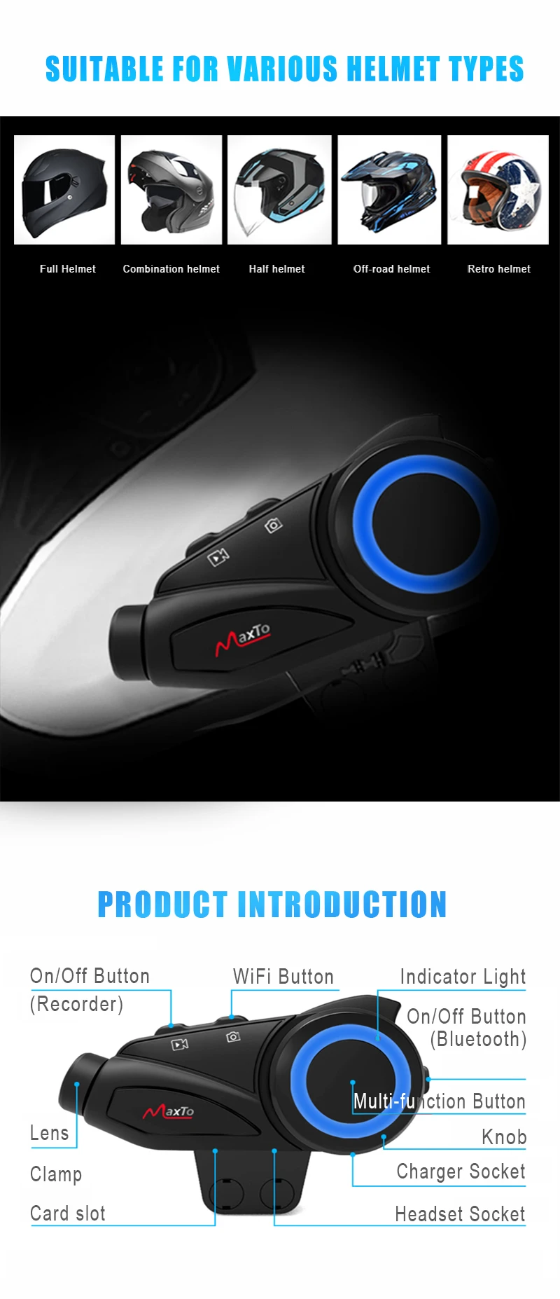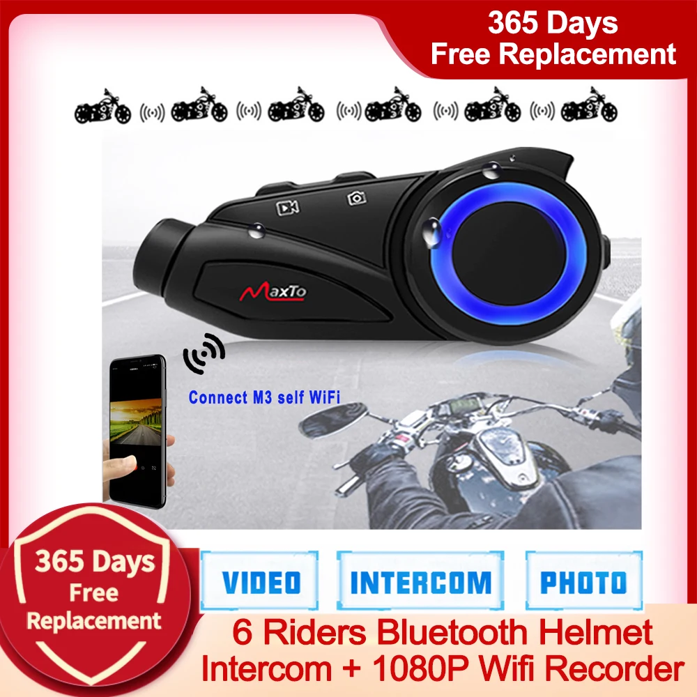 Maxto M3 Moto гарнитура 6 мотоциклистов Bluetooth и WIFI Recorer шлем домофон с HD Sony 1080P объектив DVR + 32 ГБ