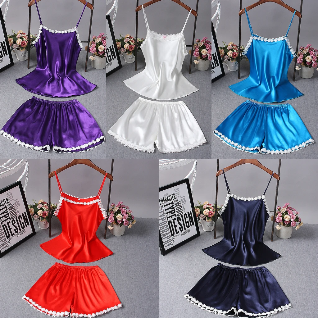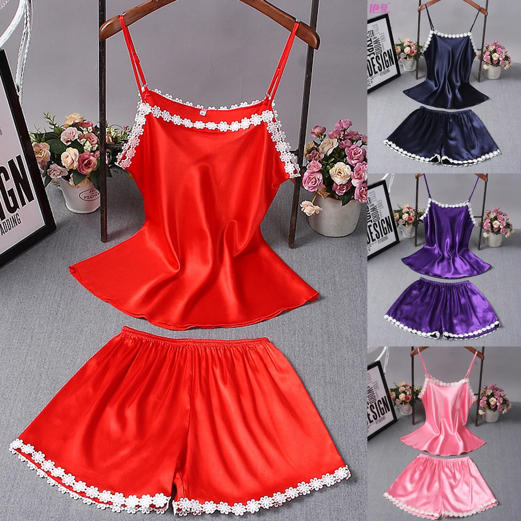 Женское платье Ночная рубашка Пижама комбинация платье Сексуальная Ночная рубашка Кружева шелковый халат Лето 2021 Женское ночное платье красный черный синий фиолетовый