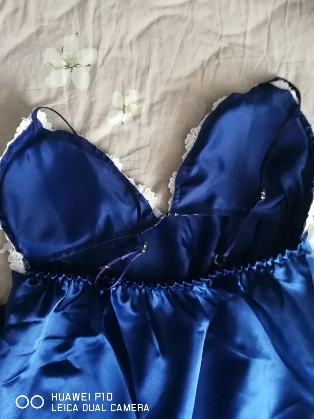 Товар такой же, как на фото. Милое маленькое Ночное платье и трусики. Проблема с этим ночным платьем я купил несколько цветов. Что эластичные ремни тянут грудь платье области вверх на груди нужно тянуть вниз на грудь. Очень красивая ткань