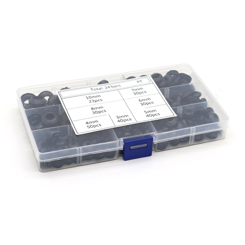 243 шт., резиновые втулки, 7 размеров, набор стопорных колец для шт...