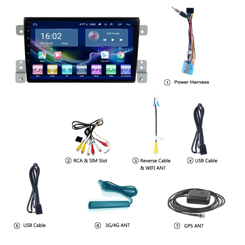 Цена для навигации, включая раму, головное устройство (экран), жгут питания,