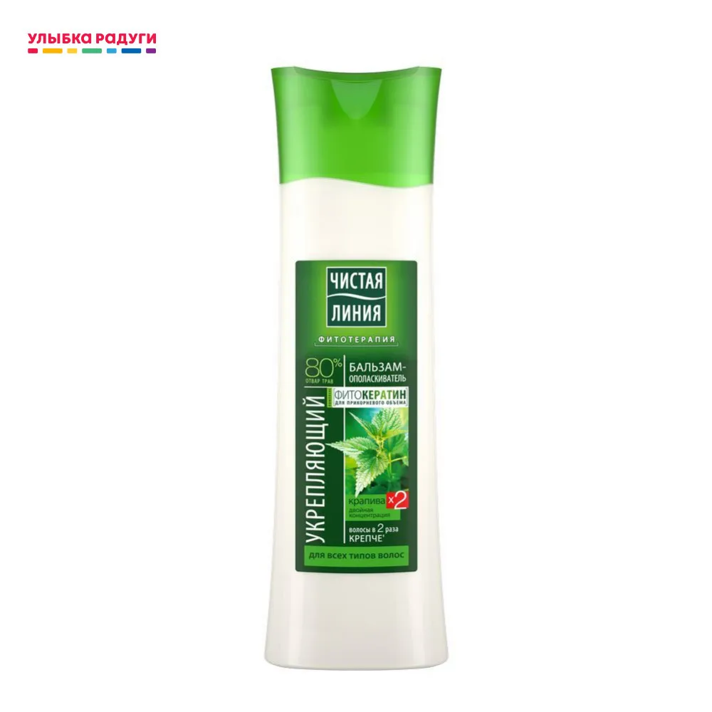 Новая формула шампуней и бальзамов Чистая линия теперь не только на 80% состоит из отвара трав, но и обогащена комплексом Фитокератин для прикорневого объема. Особые молекулы комплекса Фитокератин утолщают волосы у основания и приподнимают их от корней без утяжеления. - Экстракт крапивы в двойной концентрации укрепляет корни волос и способствует их росту. - Отвар целебных трав защищает волосы от повреждений, сокращает их выпадение. Способ применения:Нанесите на влажные чистые волосы, оставьте на 1 минуту, смойте водой. Особенности:Не является лекарственным средством. Противопоказания:Использование в пищевых целях недопустимо. Избегайте попадания в глаза. При попадании в глаза тщательно промойте их водой. Тип кожи:Для всех типов кожи. Тип волос:Для всех типов волос. Аромат:Травяной Текстура:Легкая кремообразнаяУсловия хранения:От 0 С до +25 С Состав :Aqua, Cetearyl Alcohol, Parfum, Achillea Millefolium Extract, Chamomilla Recutita (Matricaria) Flower, Chelidonium Majus Extract, Hydrolyzed Wheat Protein, Hypericum Perforatum Flower/Leaf/Stem Extract, Laurdimonium Hydroxypropyl Hydrolyzed Wheat Protein, Urtica Dioica (Nettle) Leaf Extract (Экстракт крапивы), Urtica Dioica (Nettle) Leaf Powder, Behentrimonium Chloride, Ceteareth-20, Cetrimonium Chloride, Citric Acid, Glycerin, Isopropyl Alcohol, Methylchloroisothiazolinone, Methylisothiazolinone, Panthenol, Pantolactone, Phenoxyethanol, Sodium Benzoate, Benzyl Salicylate, Butylphenyl Methylpropional, Citronellol, Limonene, Linalool.
