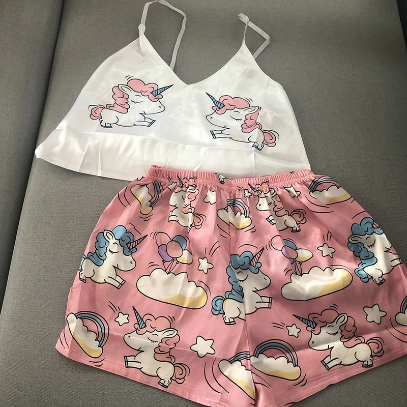 Пижама QWEEK с единорогом для женщин, шелковая пижама, пижама для д...