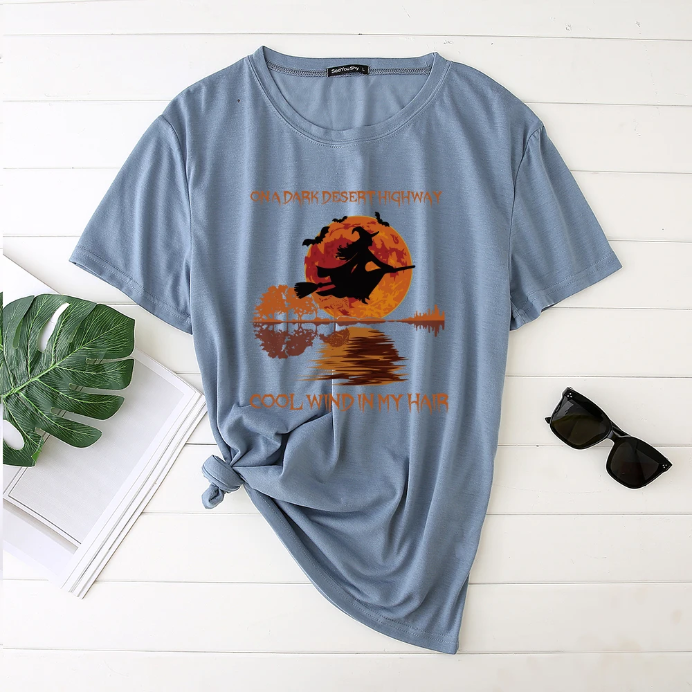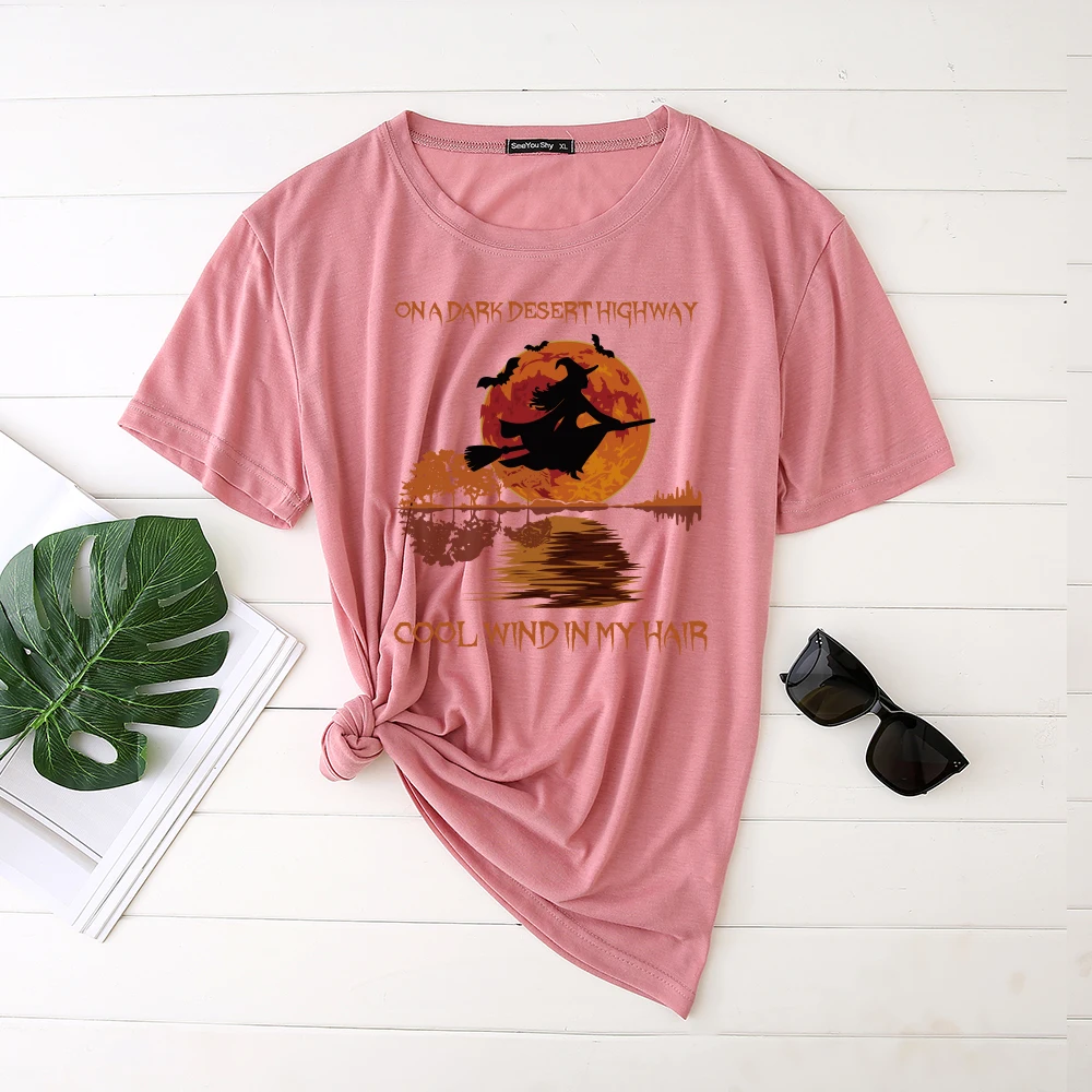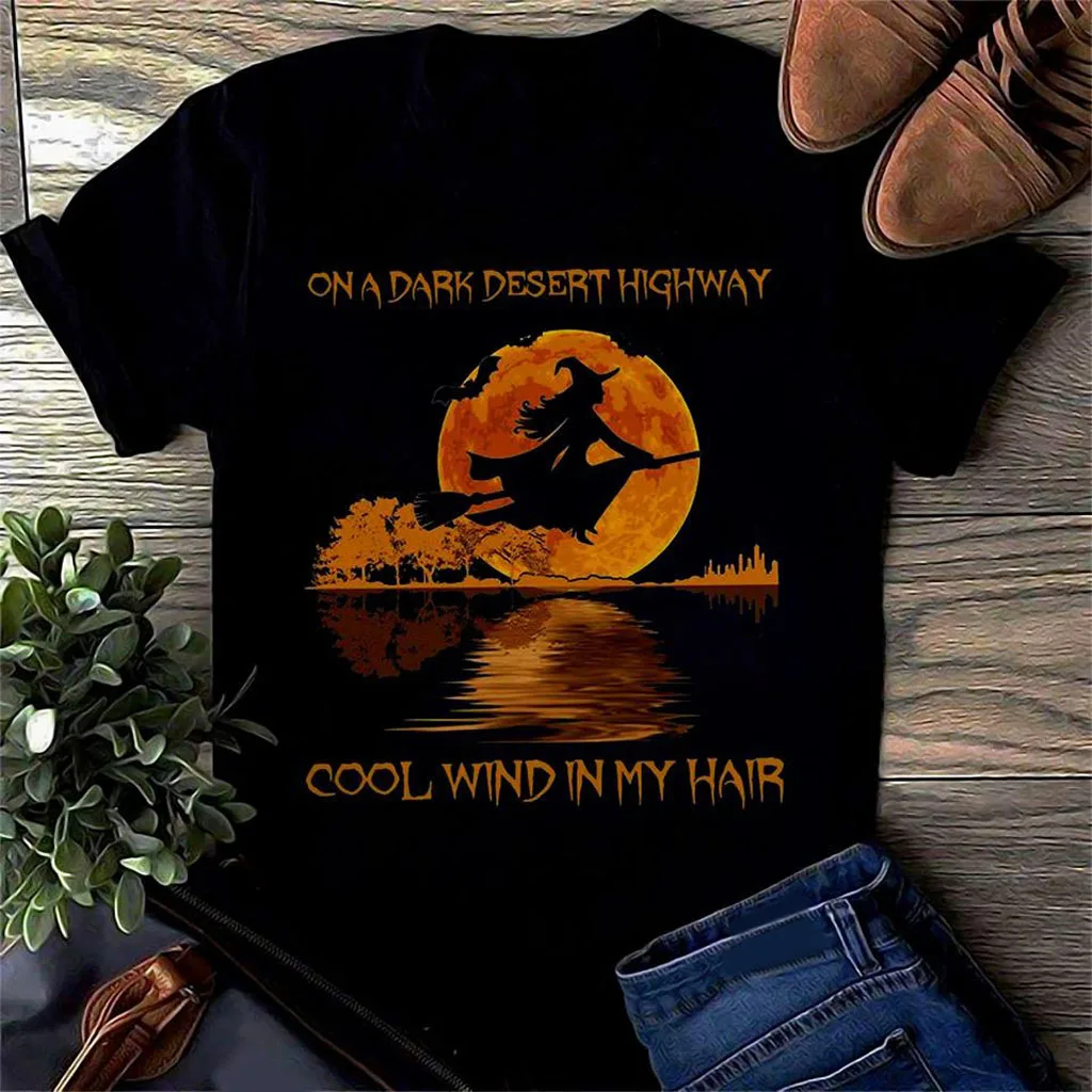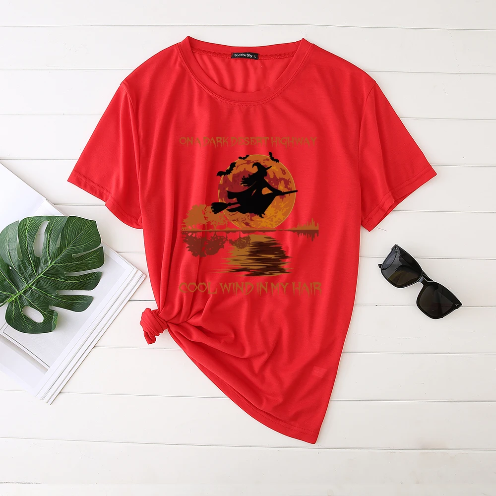 Женская футболка с коротким рукавом Seeyoushy on A Dark Desert Highway Cool Wind In My Hair, принт ведьмы на Хэллоуин, забавные Молодежные футболки