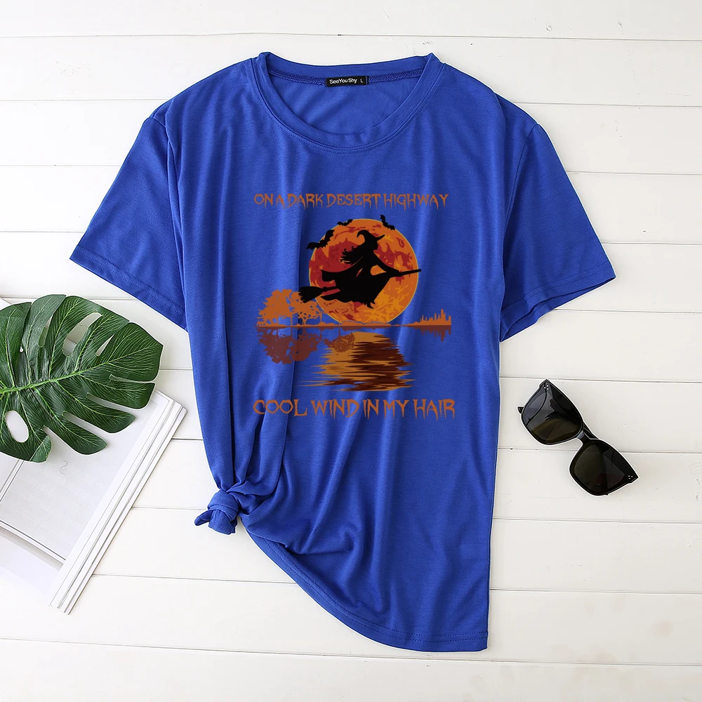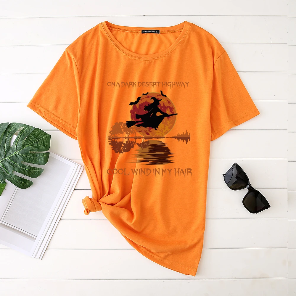 Женская футболка на Хэллоуин с коротким рукавом Seeyoushy on A Dark Desert Highway Cool Wind In My Hair Printing забавные Молодежные футболки