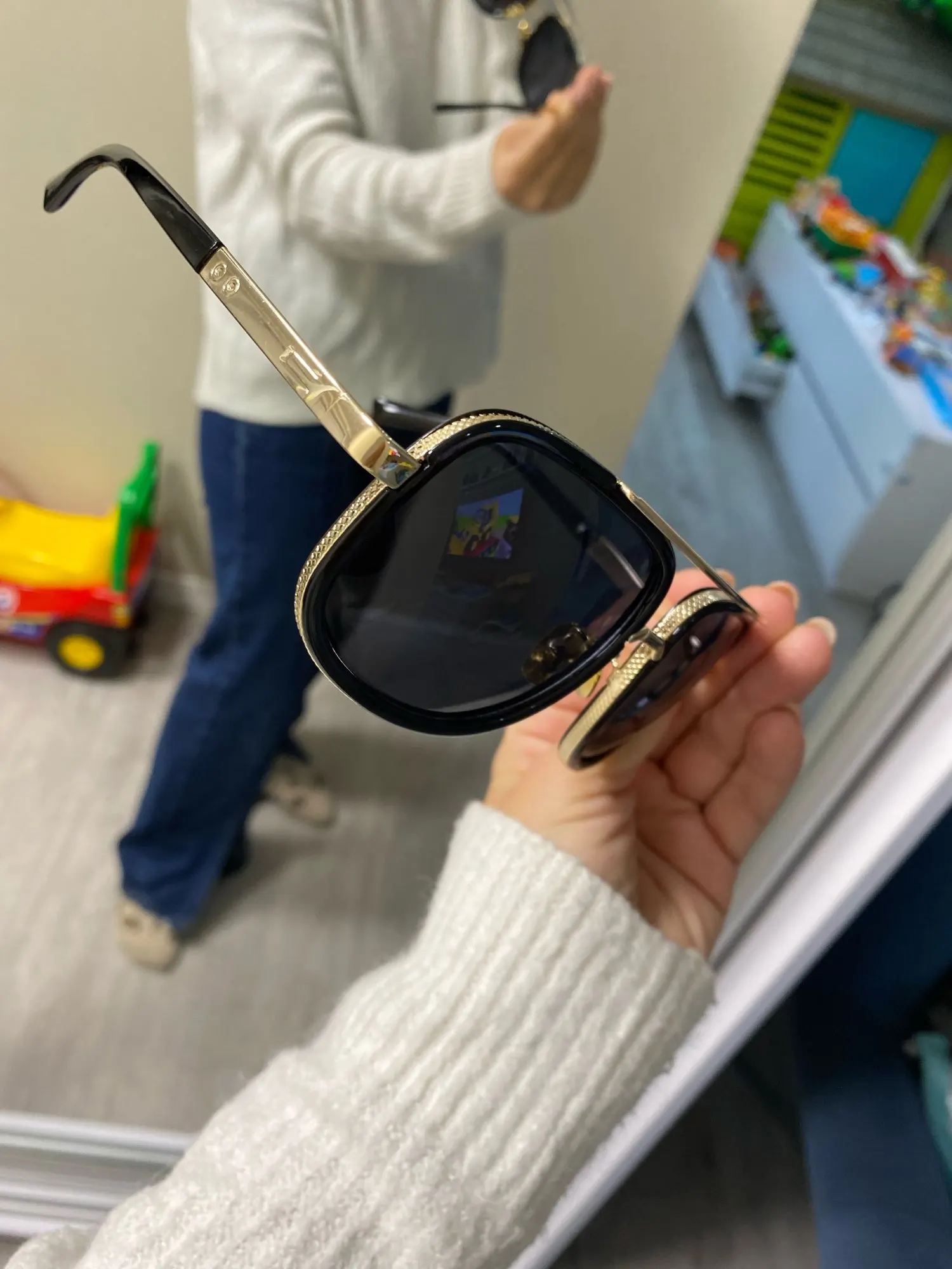 Новинка 2021, модные солнцезащитные очки с большой оправой, Мужские квадратные металлические солнцезащитные очки, женские солнцезащитные очки в стиле ретро, винтажные высококачественные очки