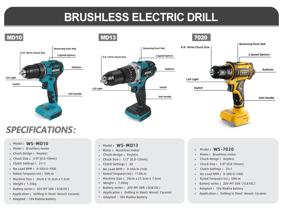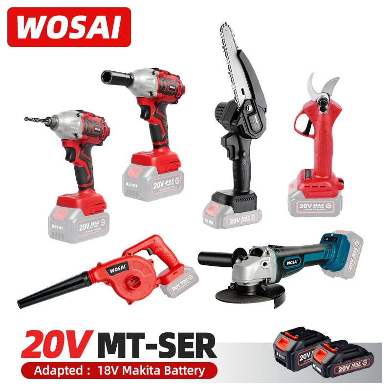 Электрический гаечный ключ WOSAI, электрическая дрель, отвертка, угловая шлифовальная машина, электрический молоток, Электрическая воздуходувка, цепная пила, для аккумулятора Makita 18 в