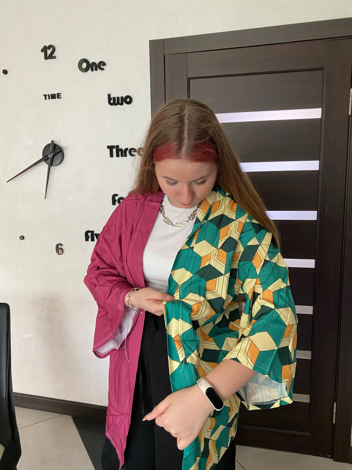 Сестра мечтала об этом кимоно, поэтому она счастлива безумно! Пришло за 3 недели. Качество конечно очень плохое, синтетика чистой воды, немного торчали нитки. Но, конечно, смысл этого кимоно совсем в другом. Поэтому для фанатов анимэ супер) Заказывали XL на S для оверсайзного эффекта