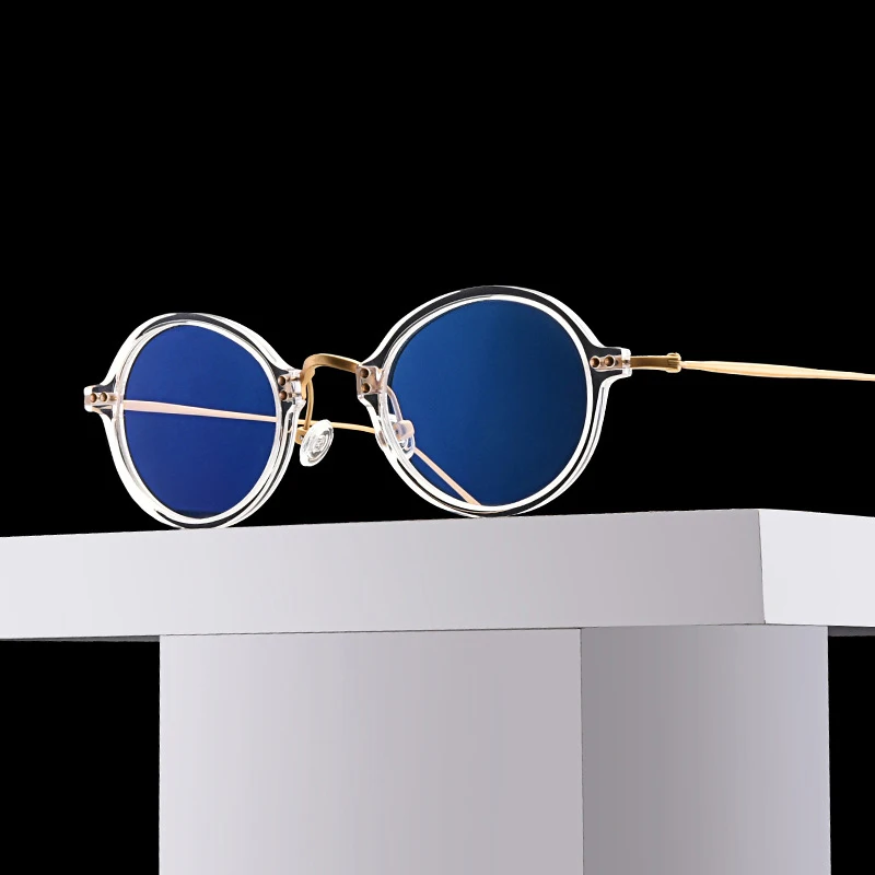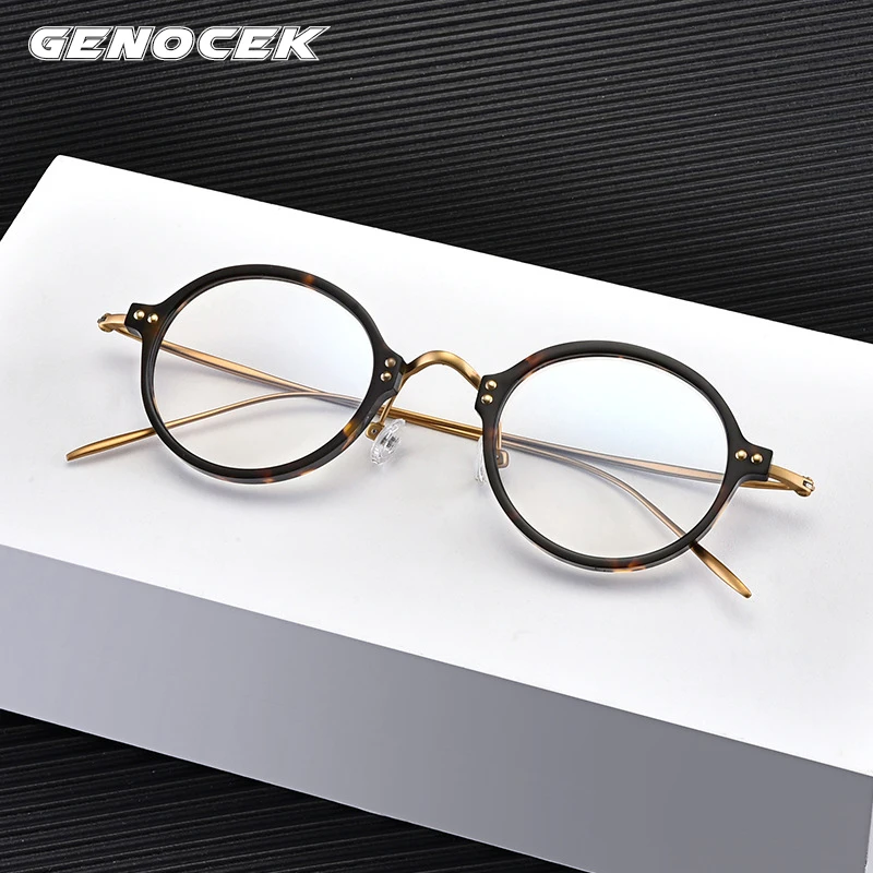 Мужская и женская круглая оправа для очков, винтажная оправа из титана и ацетатного волокна для очков для коррекции близорукости