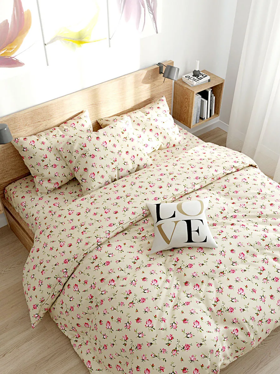 Классическая простынь Сказка "Розовые бутоны на бежевом" 150*215 24...
