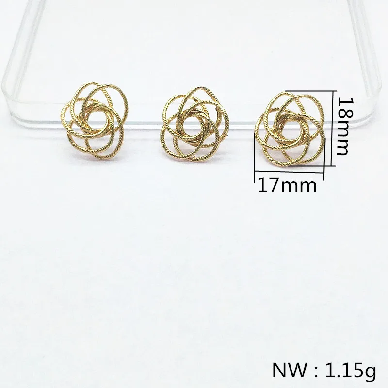 Новое поступление! Подвески для серег, из настоящего золота Соединитель с цветочным узором пробы, 18x17 мм, 50 шт.