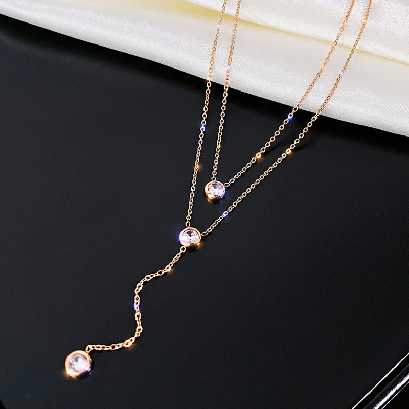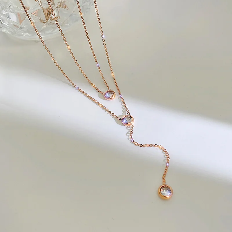 Женское Ожерелье из стерлингового серебра 925 пробы с о-образной цепочкой, модное ожерелье из розового золота с цирконием, изящное летнее Ювелирное Украшение, NK040