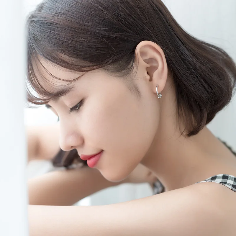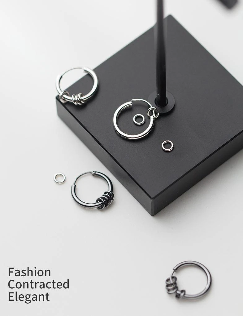 925 стерлингового серебра черный маленький мини круги серьги в виде колец, обувать в ухо кости с пряжкой Простые Модные женские и мужские ухо Jewerlry