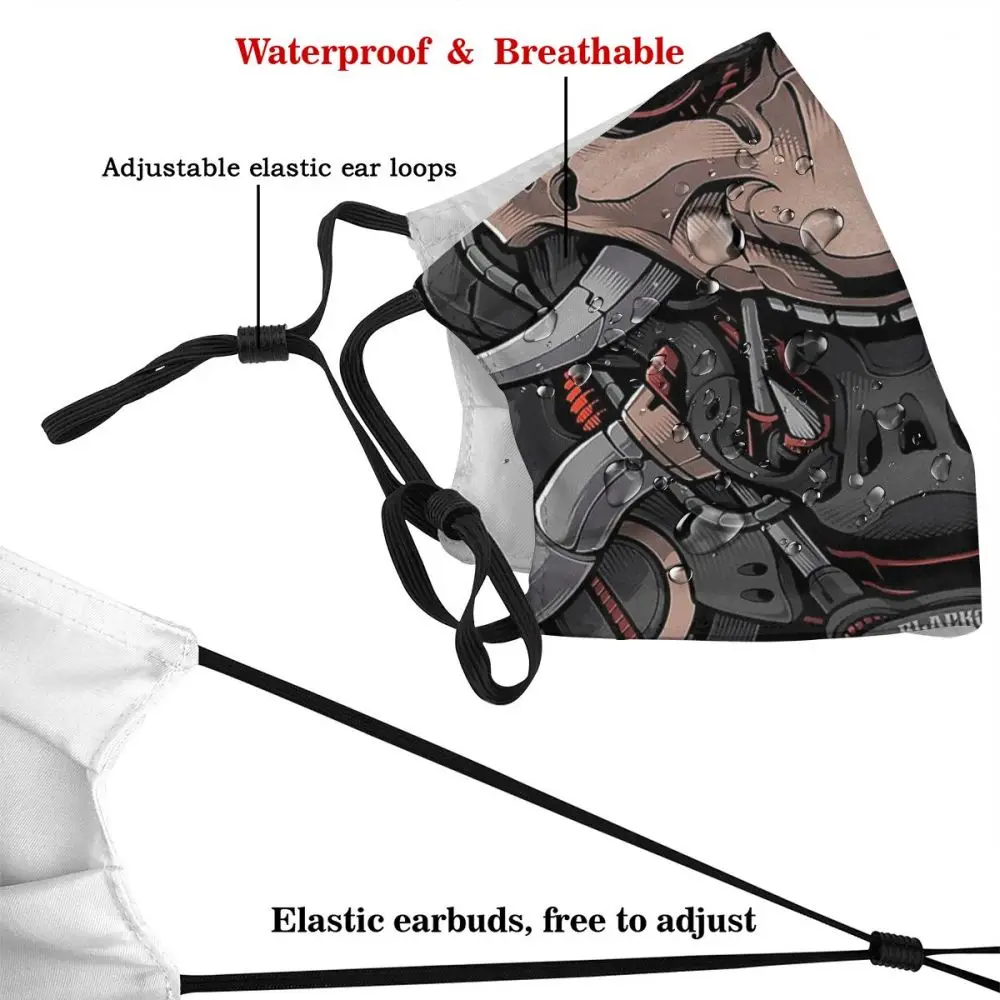 1. С внутренним карманом, который может удерживать фильтр;5-слойный фильтр с активированным углем;М-образный зажим для носа. (Регулируемый)
