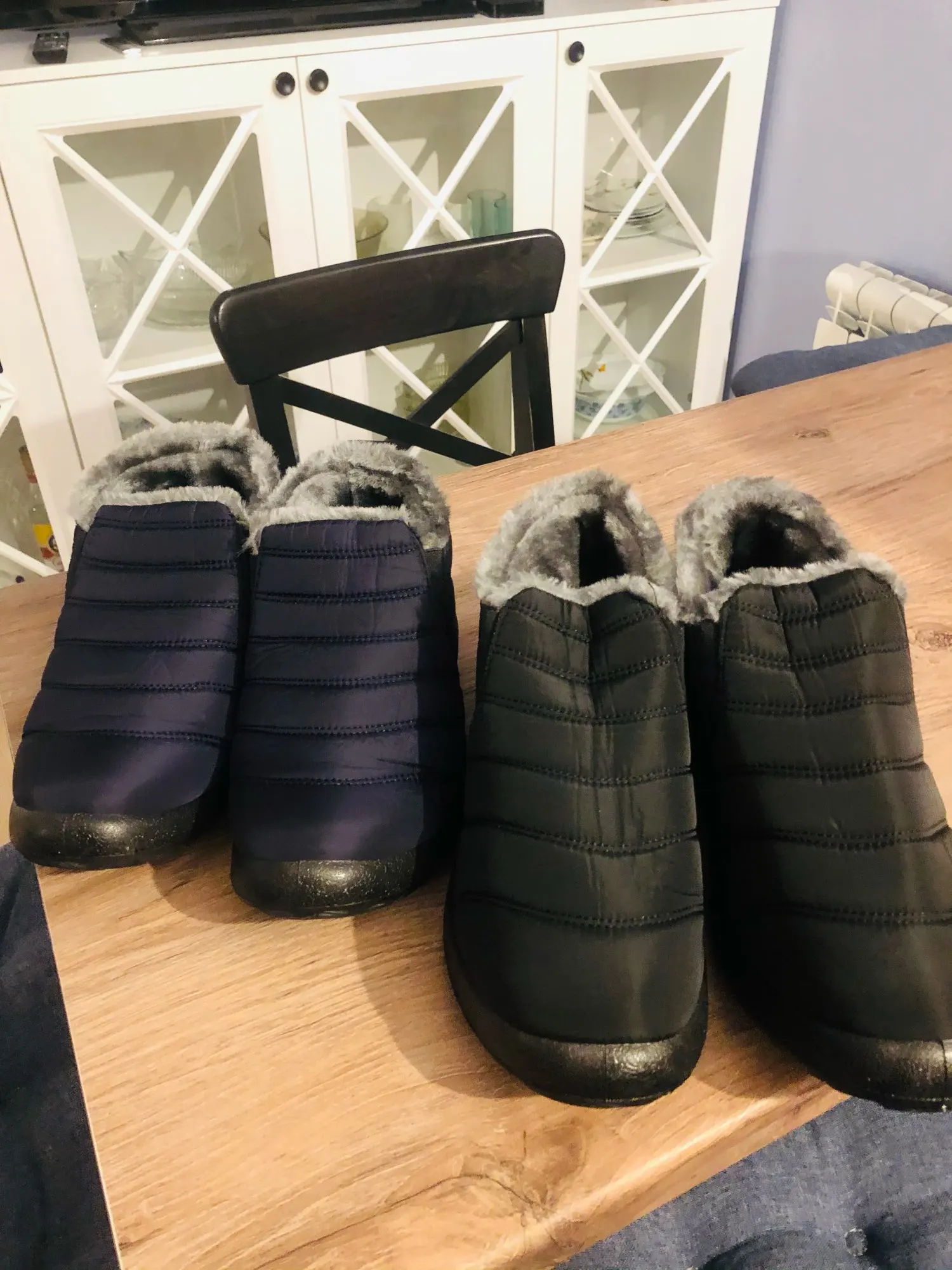 Муж очень доволен ботинками. Они теплые, лёгкие, очень удобные. Мы брали 45 размер продавца на российский 42 - отлично подошли. Единственный минус - поначалу мех изнутри пока не примнется, остаётся на носках))), но это буквально через пару раз проходит. Мех конечно не натуральный - для очень холодной погоды не подойдёт.