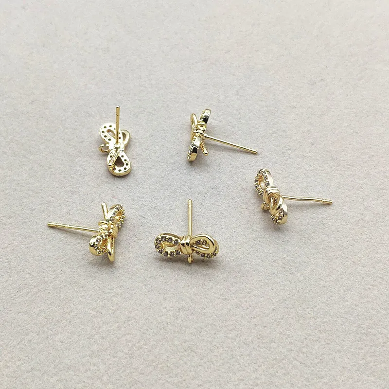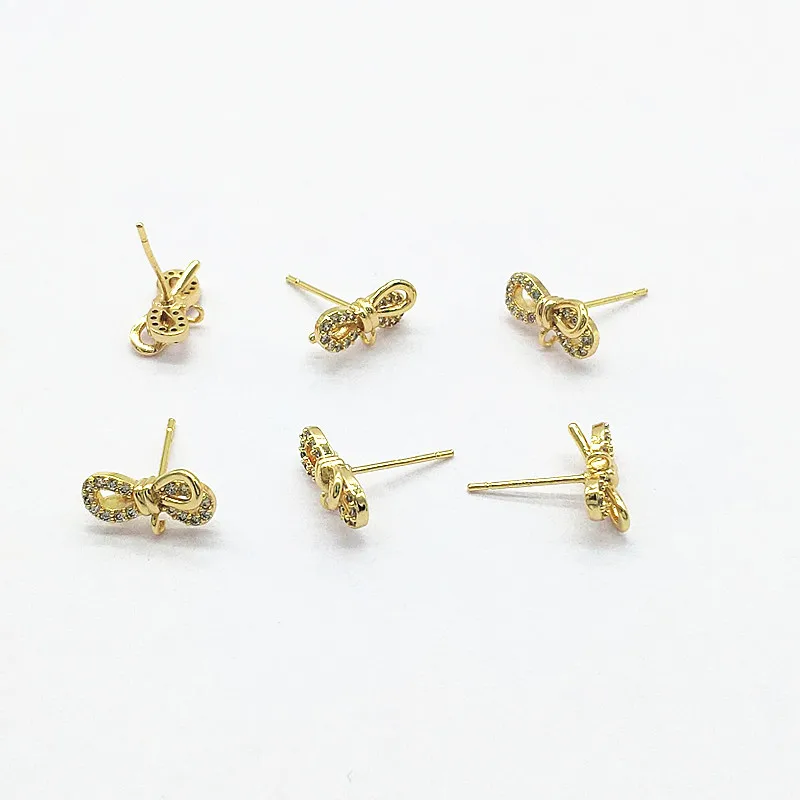 Гвоздики для сережек сделай сам, ювелирные украшения в форме банта из настоящего золота с фианитом, 7 х13 мм, 20 шт.