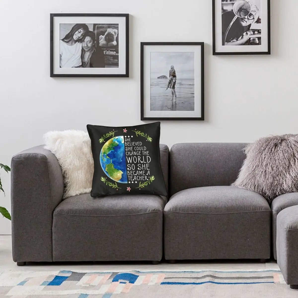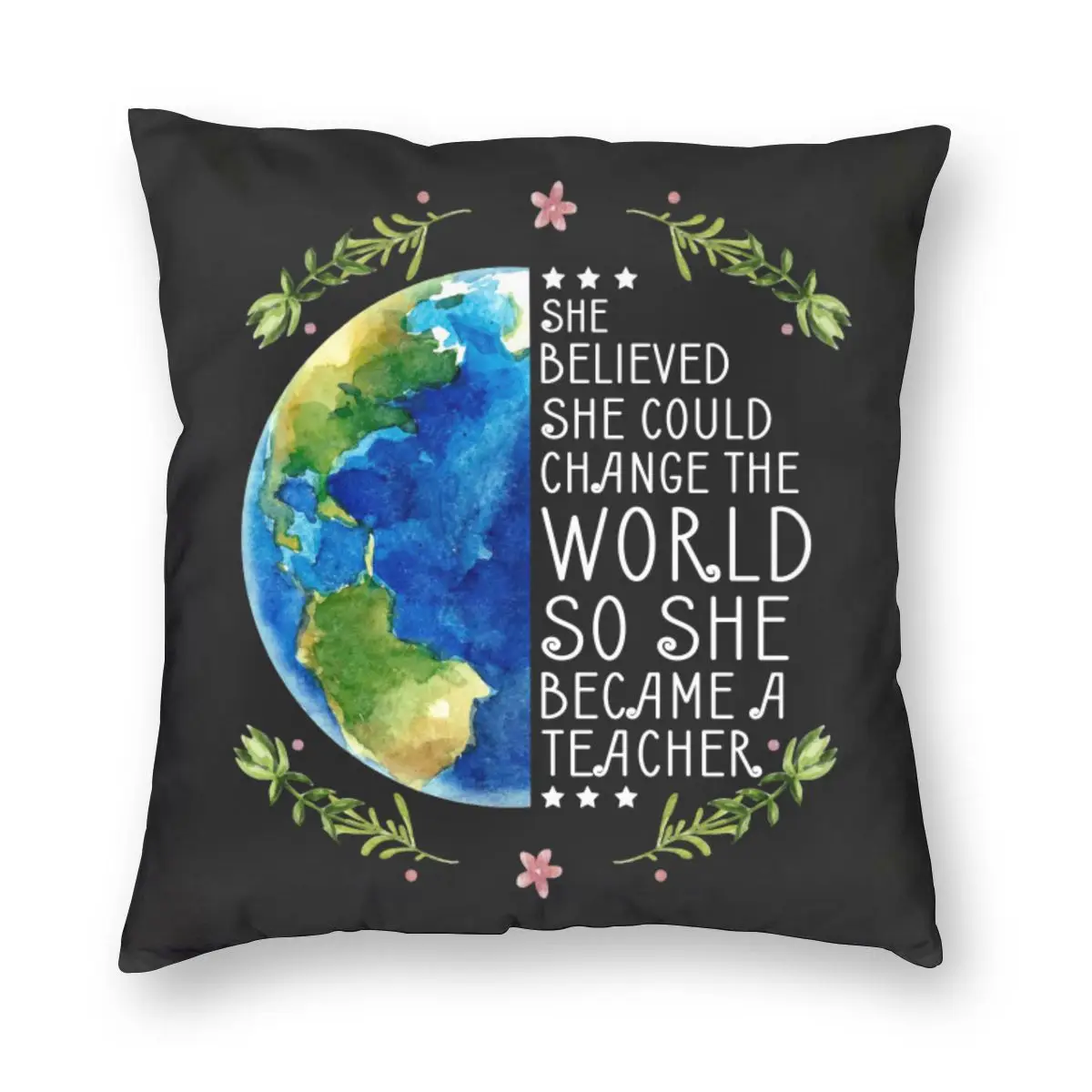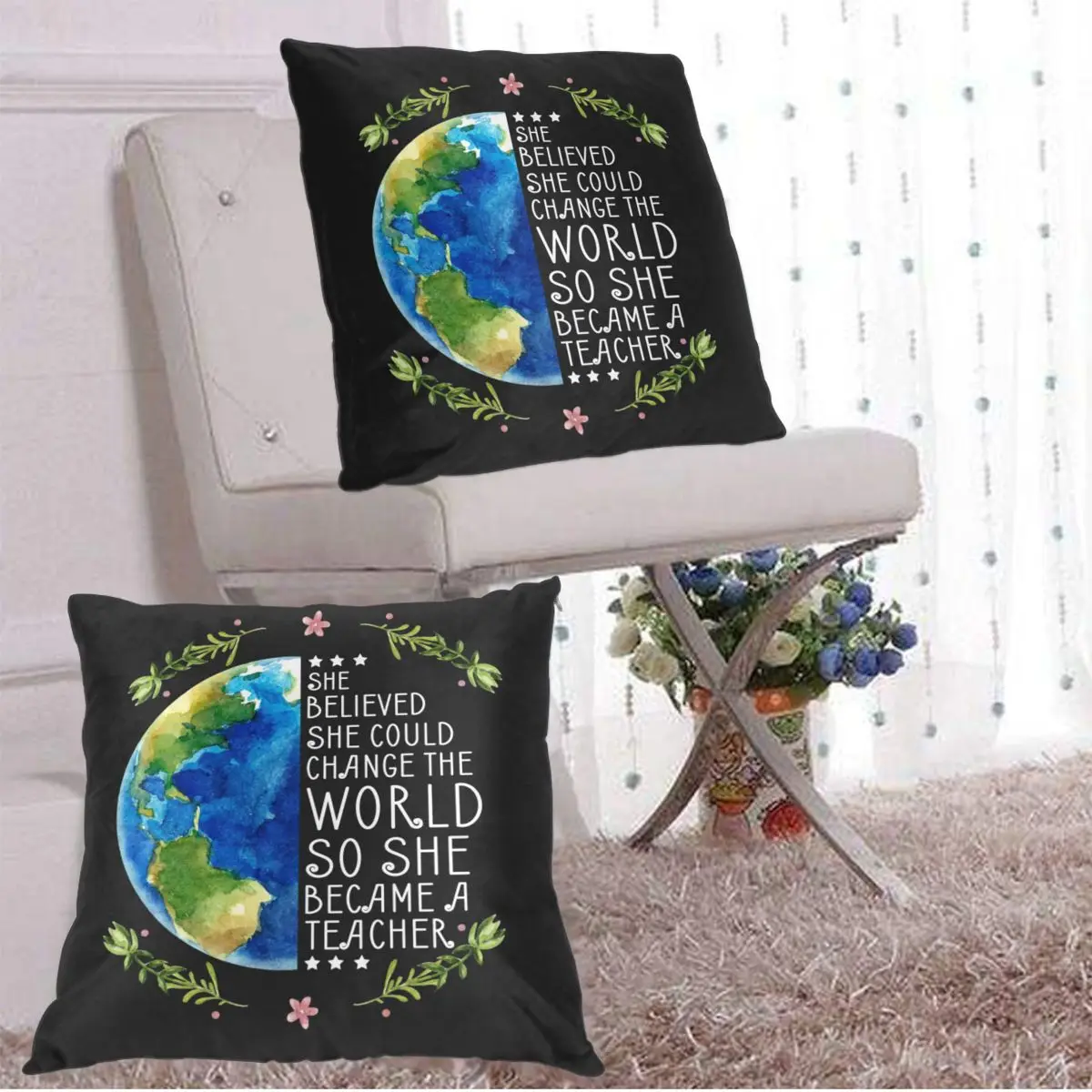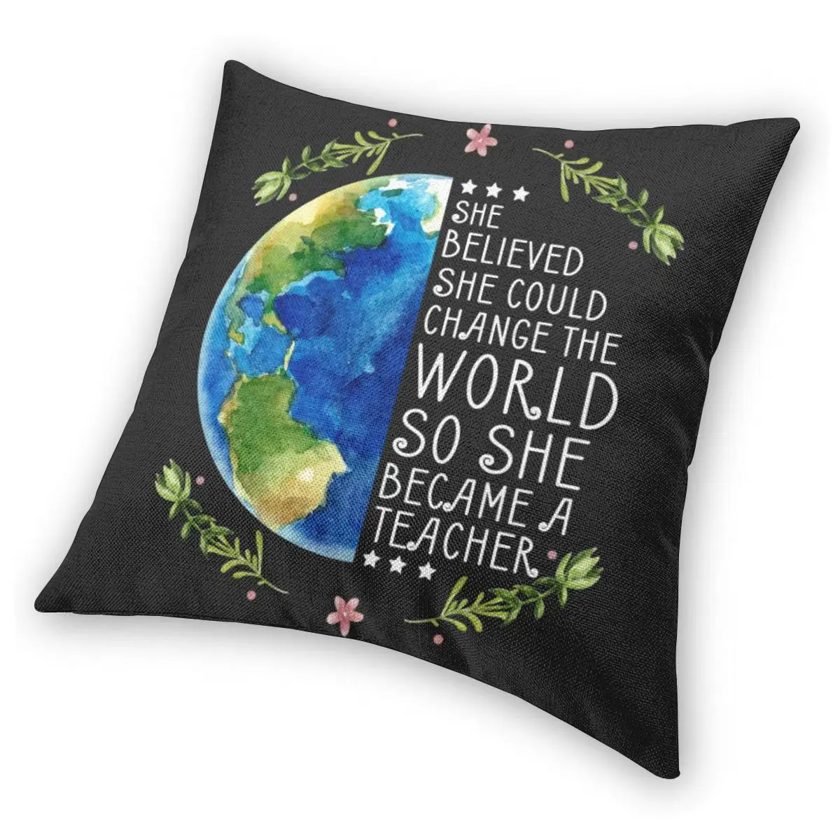 Декоративный чехол для подушки, она верила, что сможет изменить мир, чтобы она стала учительницей, Бросьте Подушки, чехол, наволочка