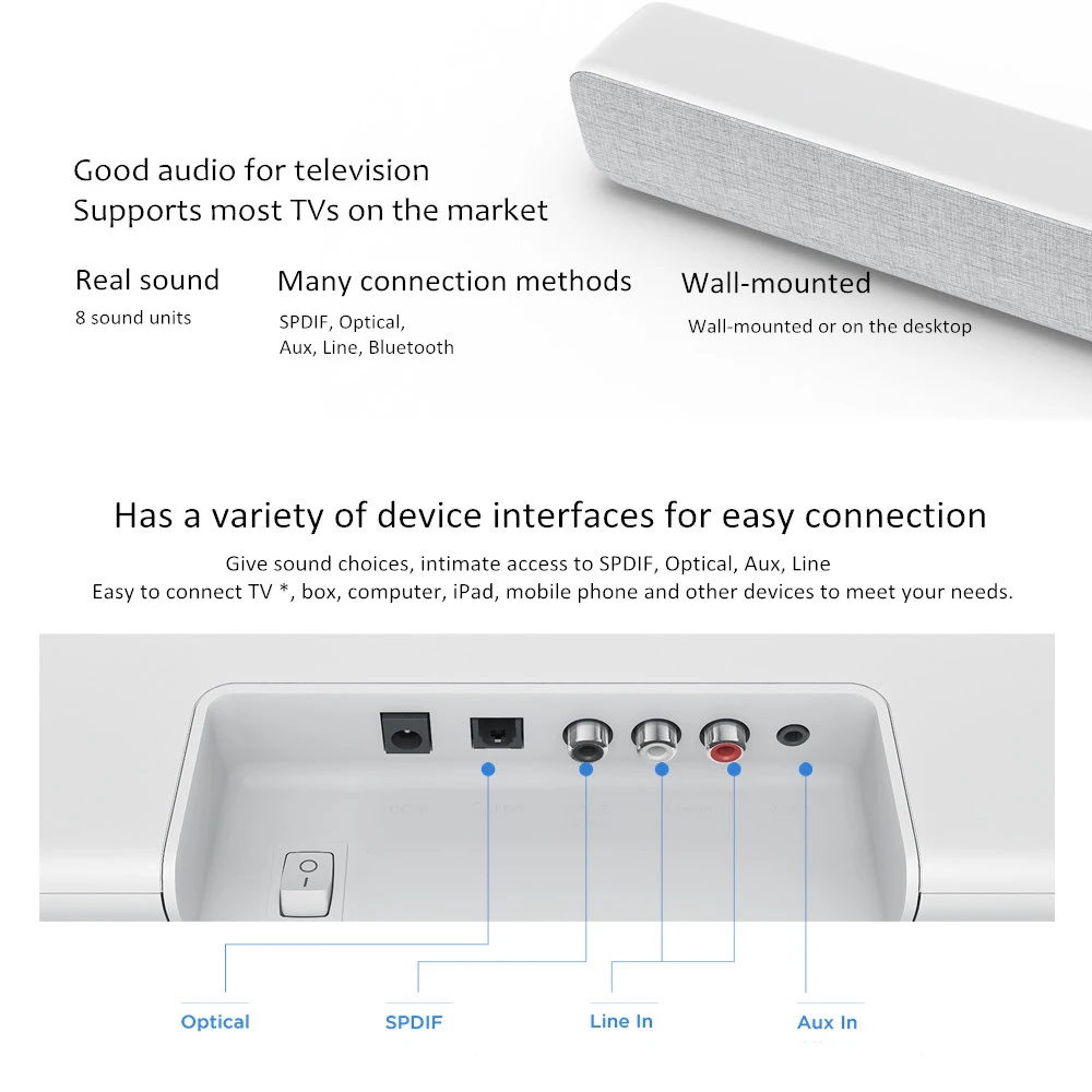Звуковая панель Xiaomi Mi, Беспроводная bluetooth-колонка, SPDIF, поддержка оптической линии Aux, для телевизоров Sony, Samsung, LG, домашнего кинотеатра