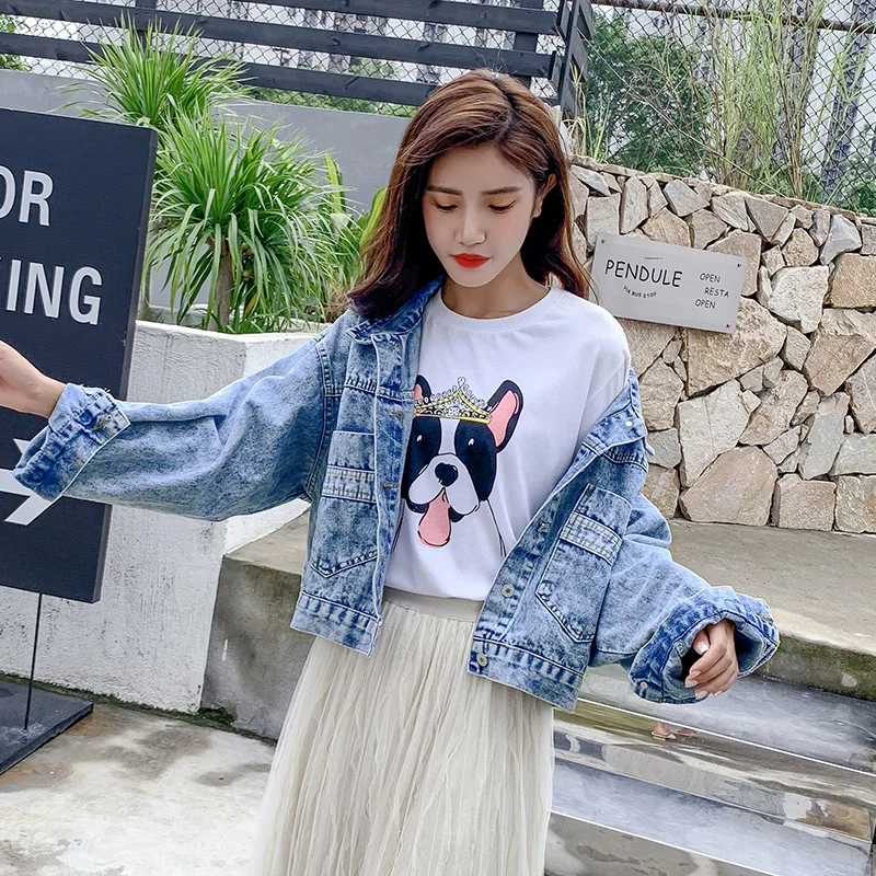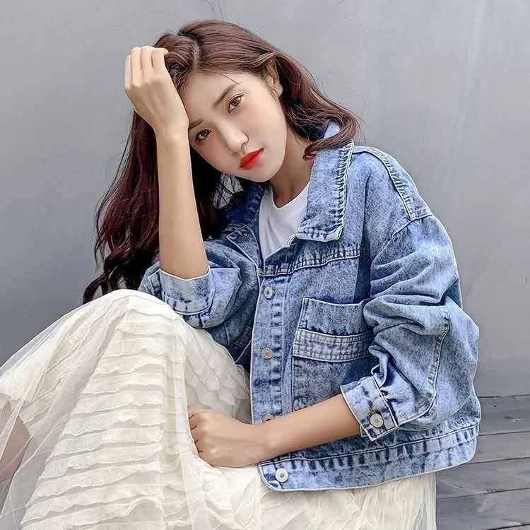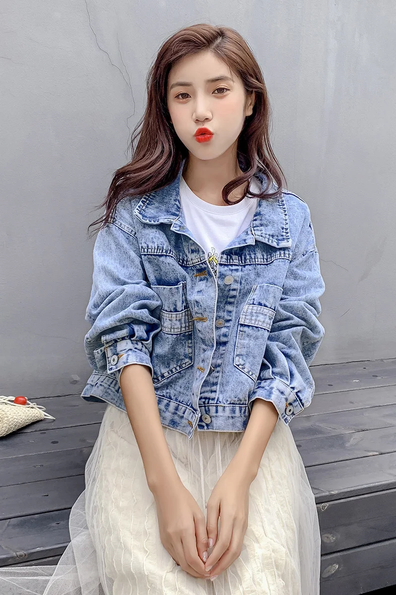 Куртка женская джинсовая короткая, повседневная верхняя одежда из денима с длинным рукавом, жакет, осень 2020