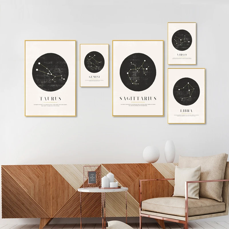 12 Созвездие стены искусства холст плакат печать Астрология Знак минималистский картина геометрической формы скандинавские дети украшения фотографии