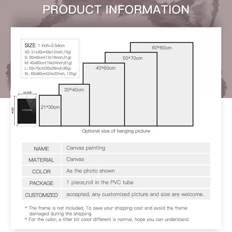 13x18cm,21X30cm,30x40cm,40x50cm,50x70cm,60x80cm, or customized
