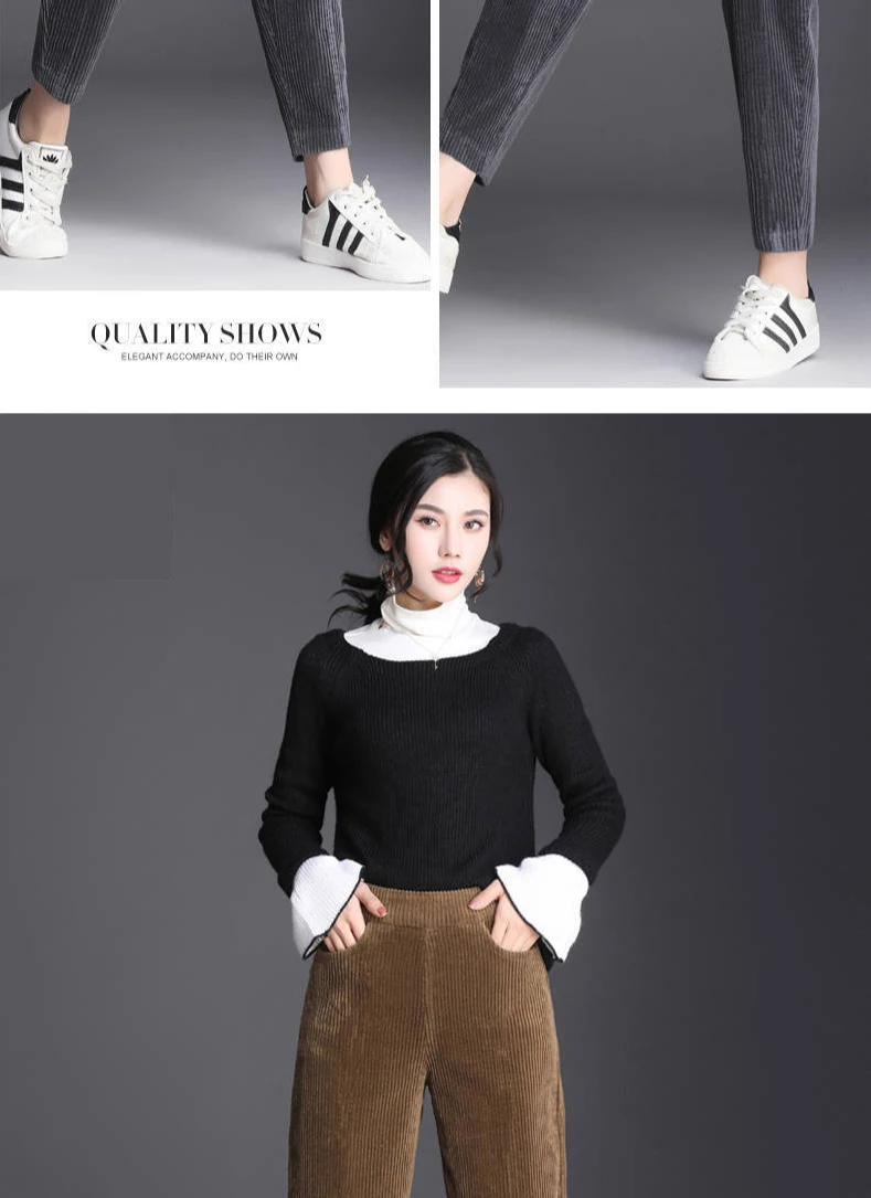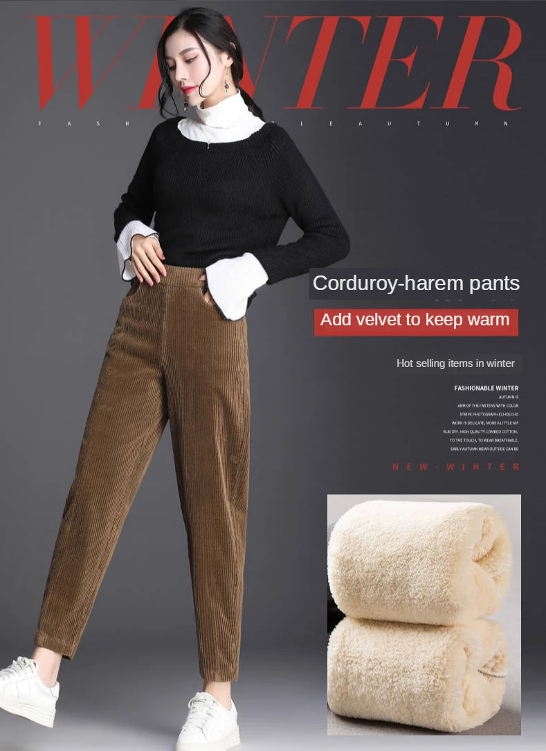 Женские вельветовые шаровары, с высокой талией, теплые, на осень и зиму, большие размеры, 2021