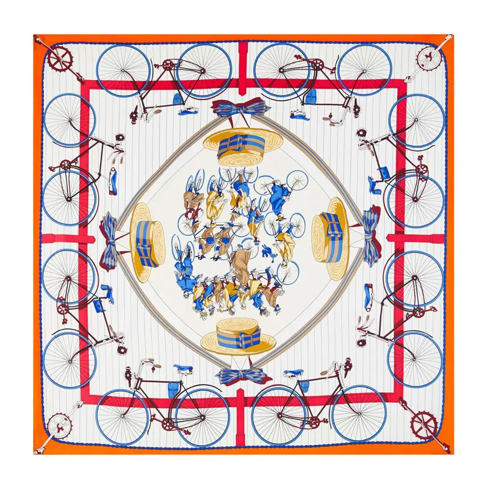 90 см с изображением велосипеда Twill Шелковый шарф, женский, хиджаб квадратный шарф, платок, фирменный дизайн, бандана ручной работы завитые платки шарфы