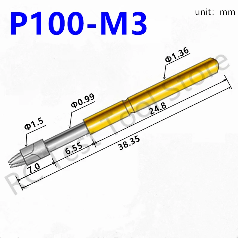 100 шт.упак. P100-M3 Весна Тесты Pin 1,36 мм внешний Диаметр 38,35 ...