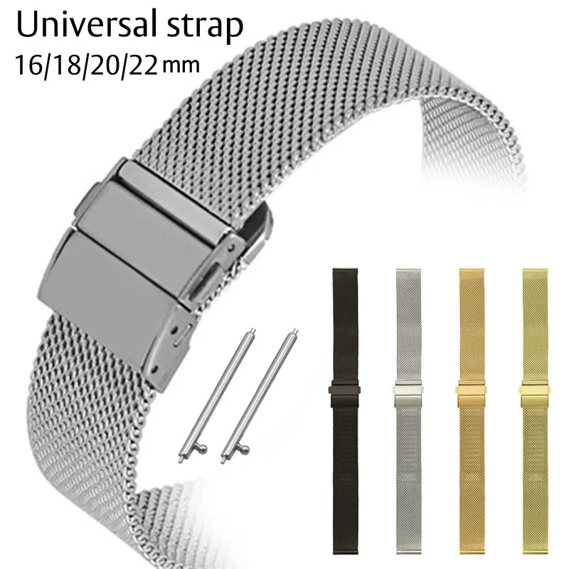 Сменный ремешок для часов 16 мм, 18 мм, 20 мм, 22 мм, ремешок для часов из нержавеющей стали, сетчатые ремешки, быстросъемные штифты, браслет на запястье